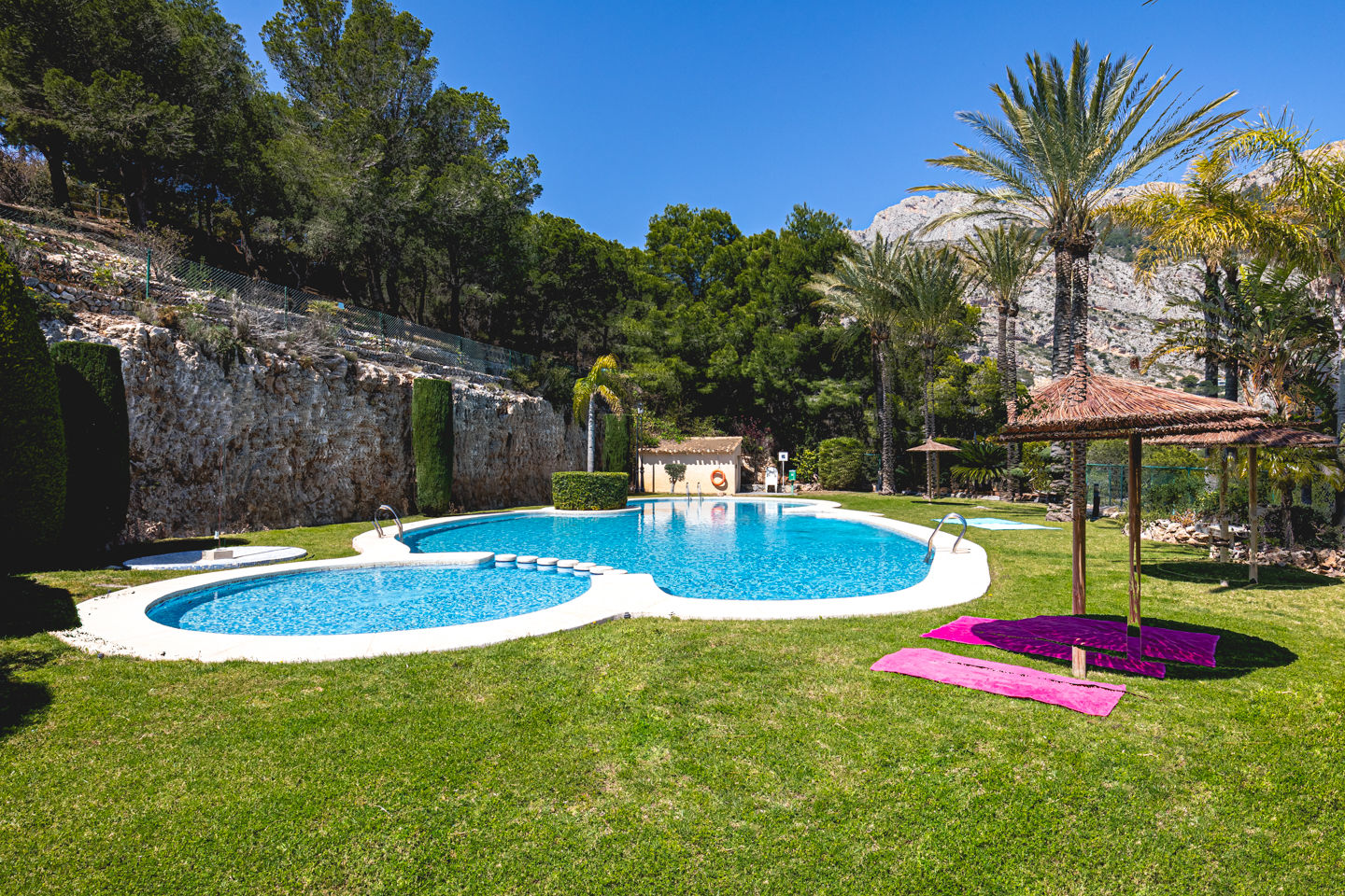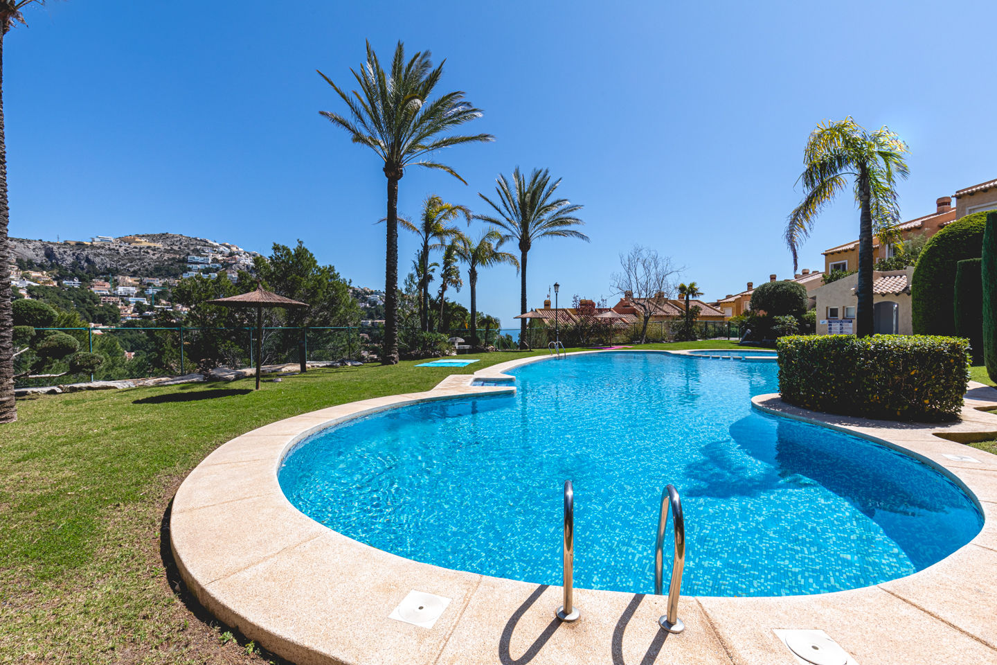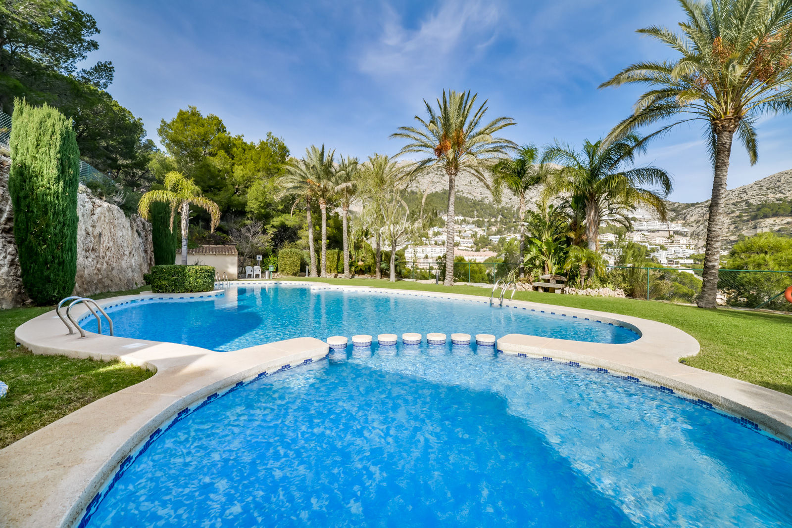 Moderna y alegre casa de vacaciones en Altea, Costa Blanca, España, con piscina comunitaria para 6 personas. La casa está situada en una zona boscosa, residencial y montañosa, y se encuentra a 4 km de la playa de Campomanes.