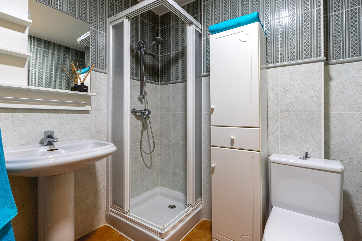 • baño con lavabo individual, ducha e inodoro