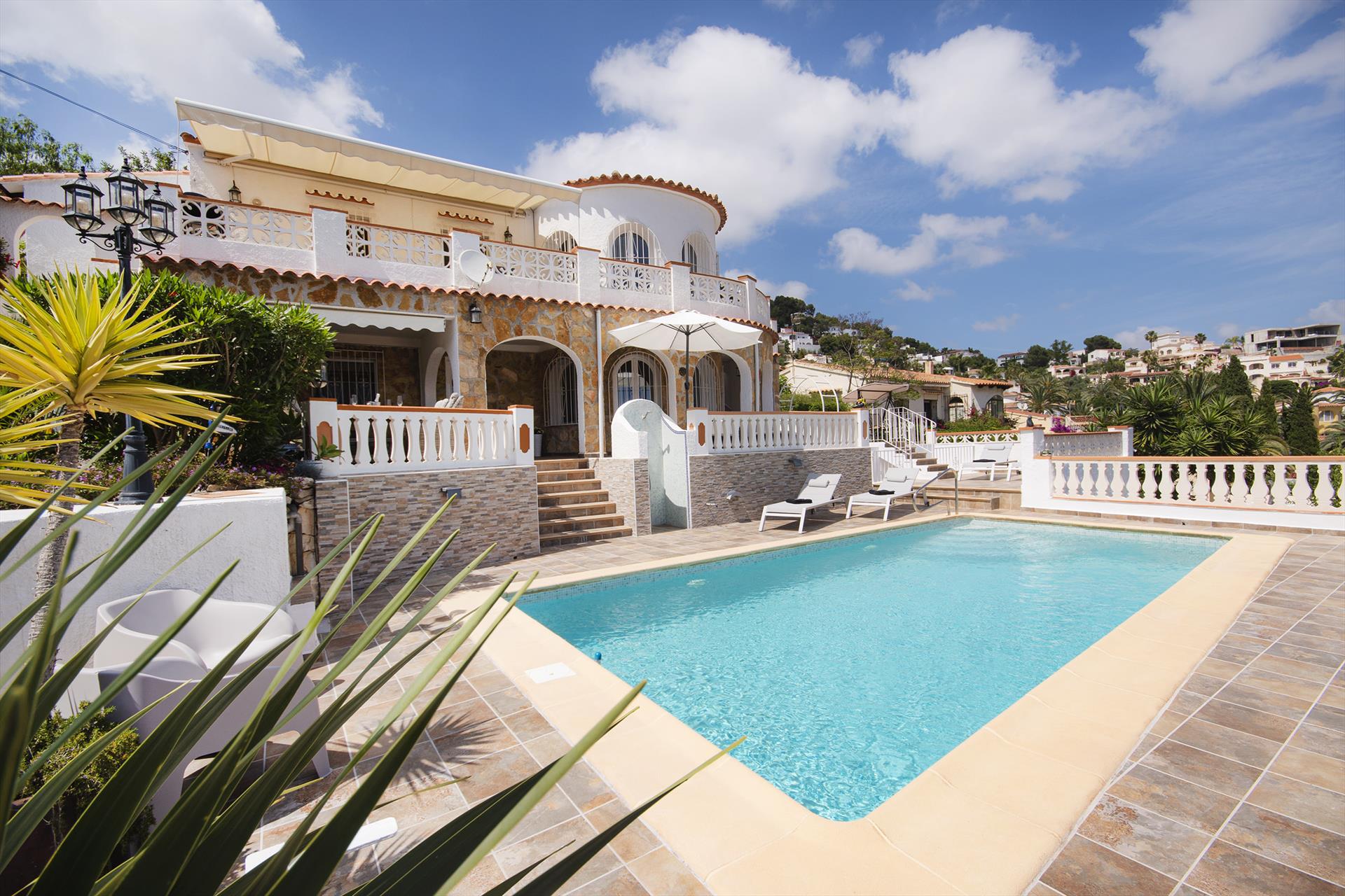 Maravillosa y alegre villa en Benissa, Costa Blanca, España, con piscina privada para 4 personas. La casa está situada en una zona costera, montañosa y residencial, a 2 km de la playa de Cala Baladrar y a 5 km de Moraira.