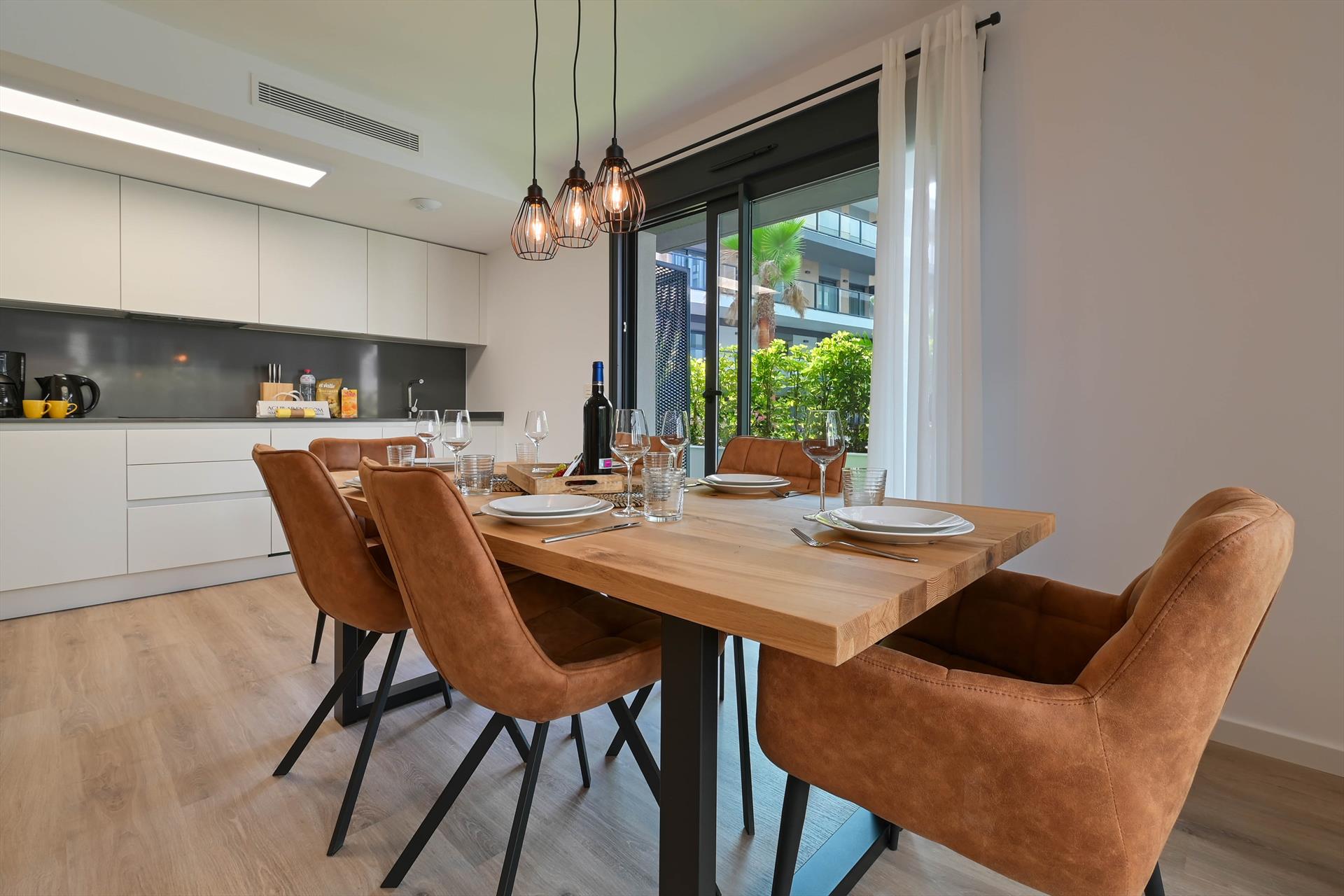 El apartamento cuenta con 3 dormitorios y 2 baños. El alojamiento ofrece privacidad y un jardín comunitario con árboles. Su comodidad y la proximidad a la playa, lugares de compras, actividades deportivas, instalaciones de entretenimiento, vida nocturna, lugares de interés y cultura hacen de este un apartamento ideal para pasar sus vacaciones en España con familia o amigos.