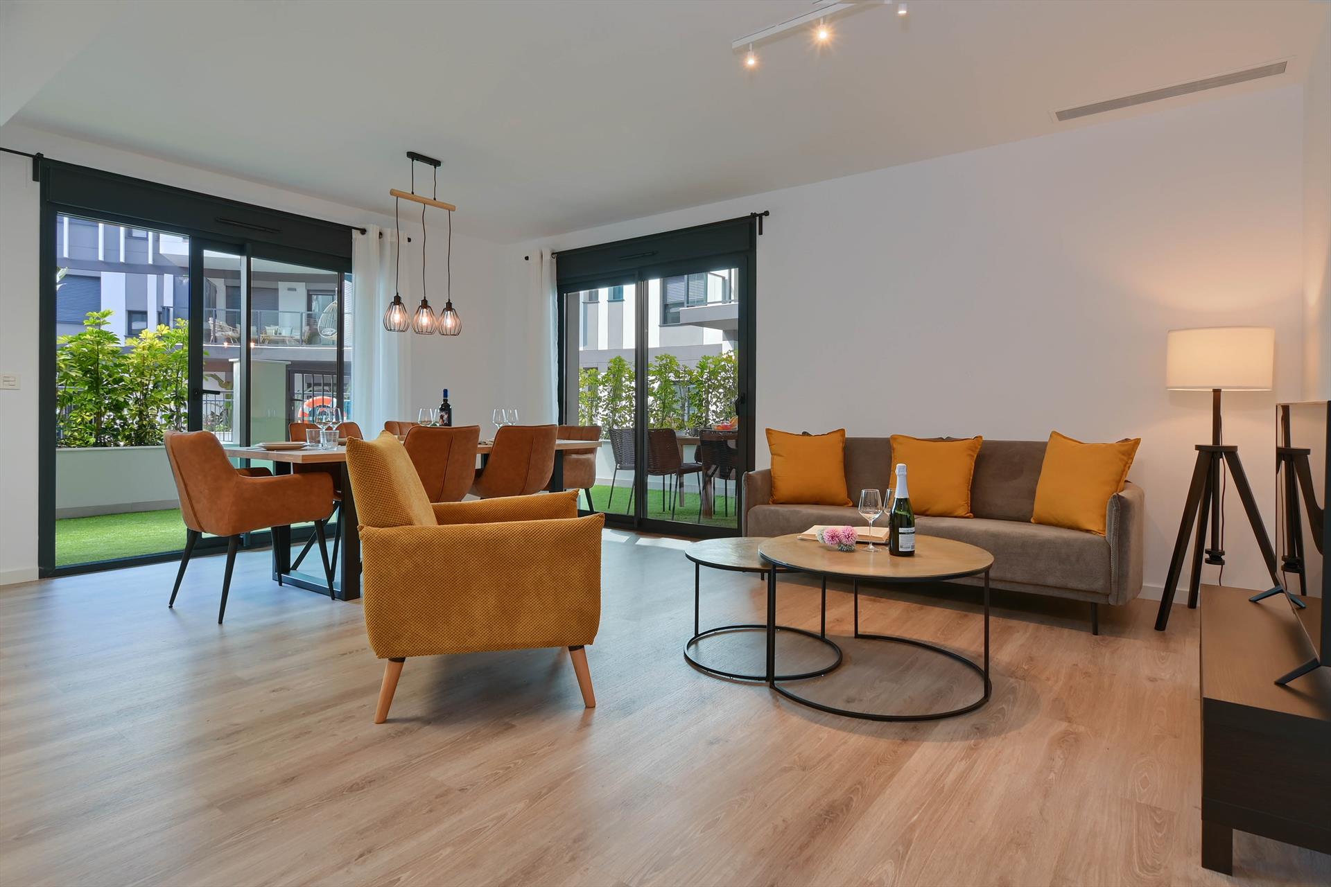 El apartamento cuenta con 2 dormitorios y 2 baños. El alojamiento ofrece privacidad y un jardín comunitario con árboles. Su comodidad y la proximidad a la playa, lugares de compras, actividades deportivas, instalaciones de entretenimiento, lugares para salir, atracciones y cultura hacen de este un apartamento ideal para pasar sus vacaciones en España con familia o amigos.