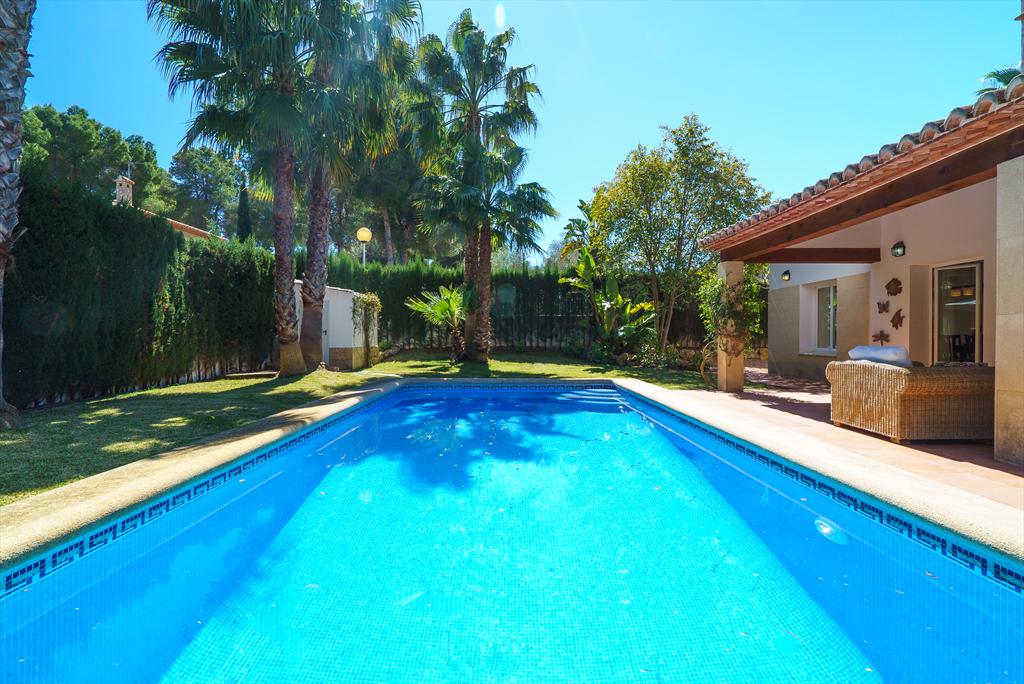 Amplia y cómoda villa con piscina privada en Jávea, Costa Blanca, España para 6 personas. La casa está situada en una zona residencial de playa, a 1 km de la playa El Arenal, Jávea y a 1 km del Mediterráneo, Jávea.