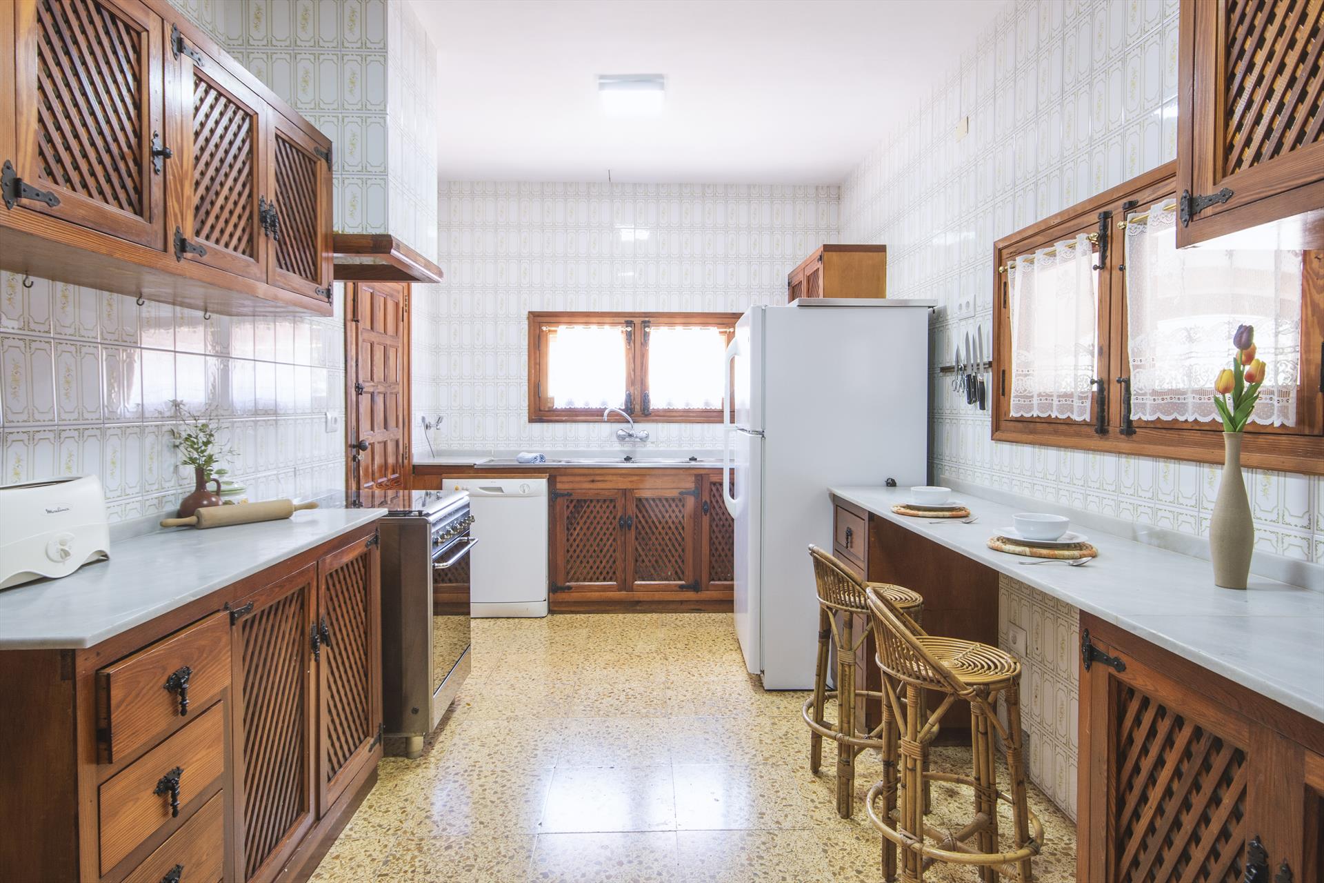 • Cocina con fogón a gas, horno eléctrico, microondas, lavavajillas, frigorífico-congelador, cafetera, hervidor eléctrico, batidora, tostadora y exprimidor