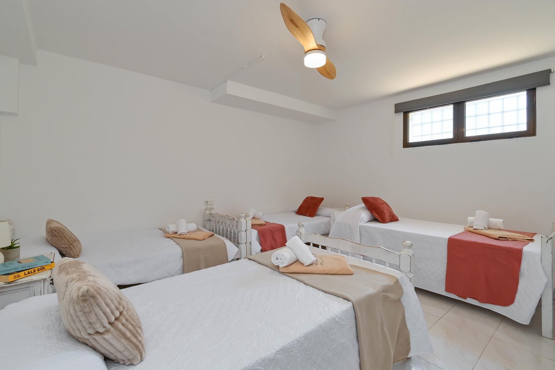 • dormitorio con 2 camas individuales (medida 190 por 80 cm) y ventilador