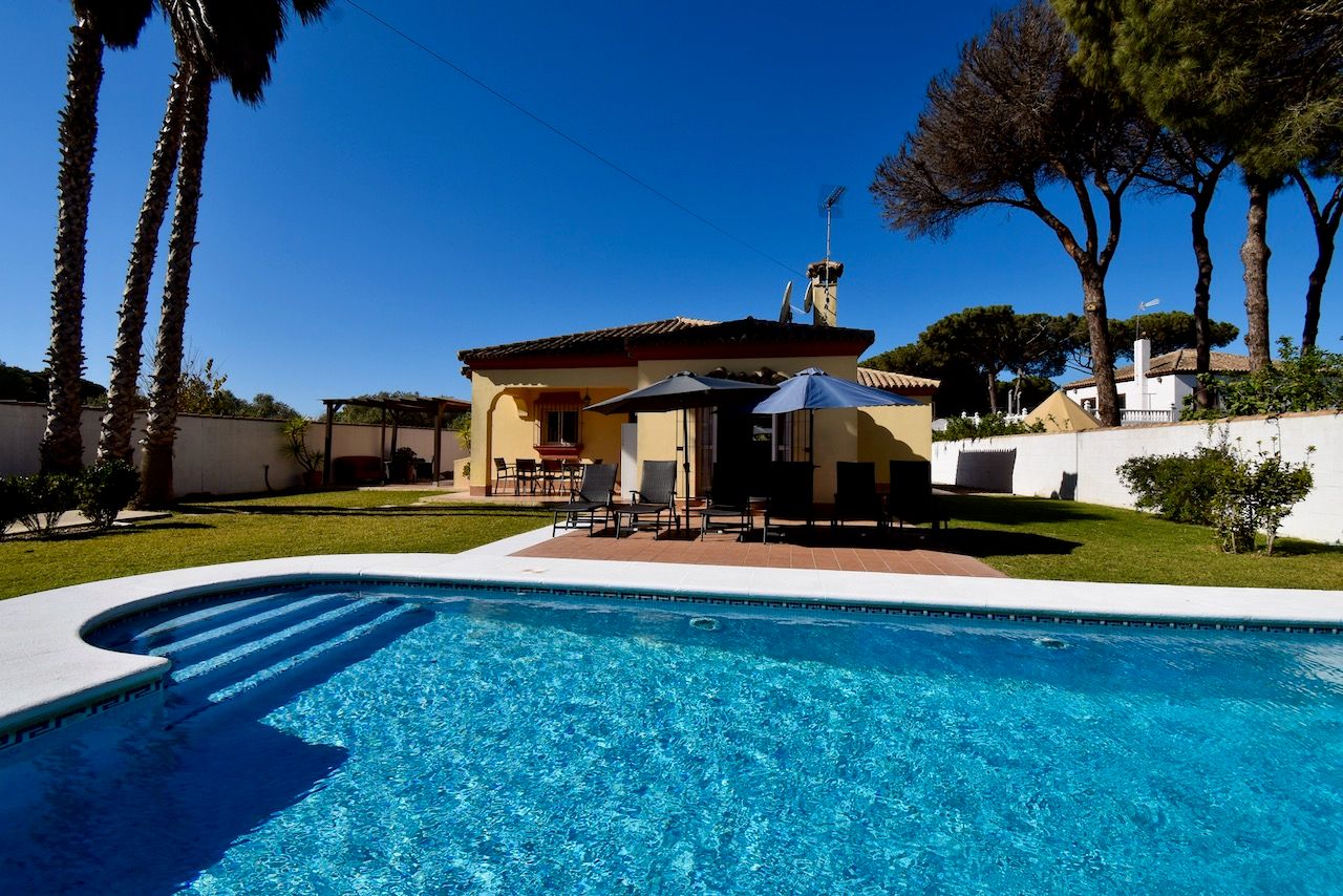 Encantadora y cómoda villa en Chiclana de la Frontera, Costa de la Luz, España, con piscina privada para 8 personas. La casa se encuentra en una zona rural de playa, a 3 km de la playa de La Barrosa y a 5 km de La Barrosa.