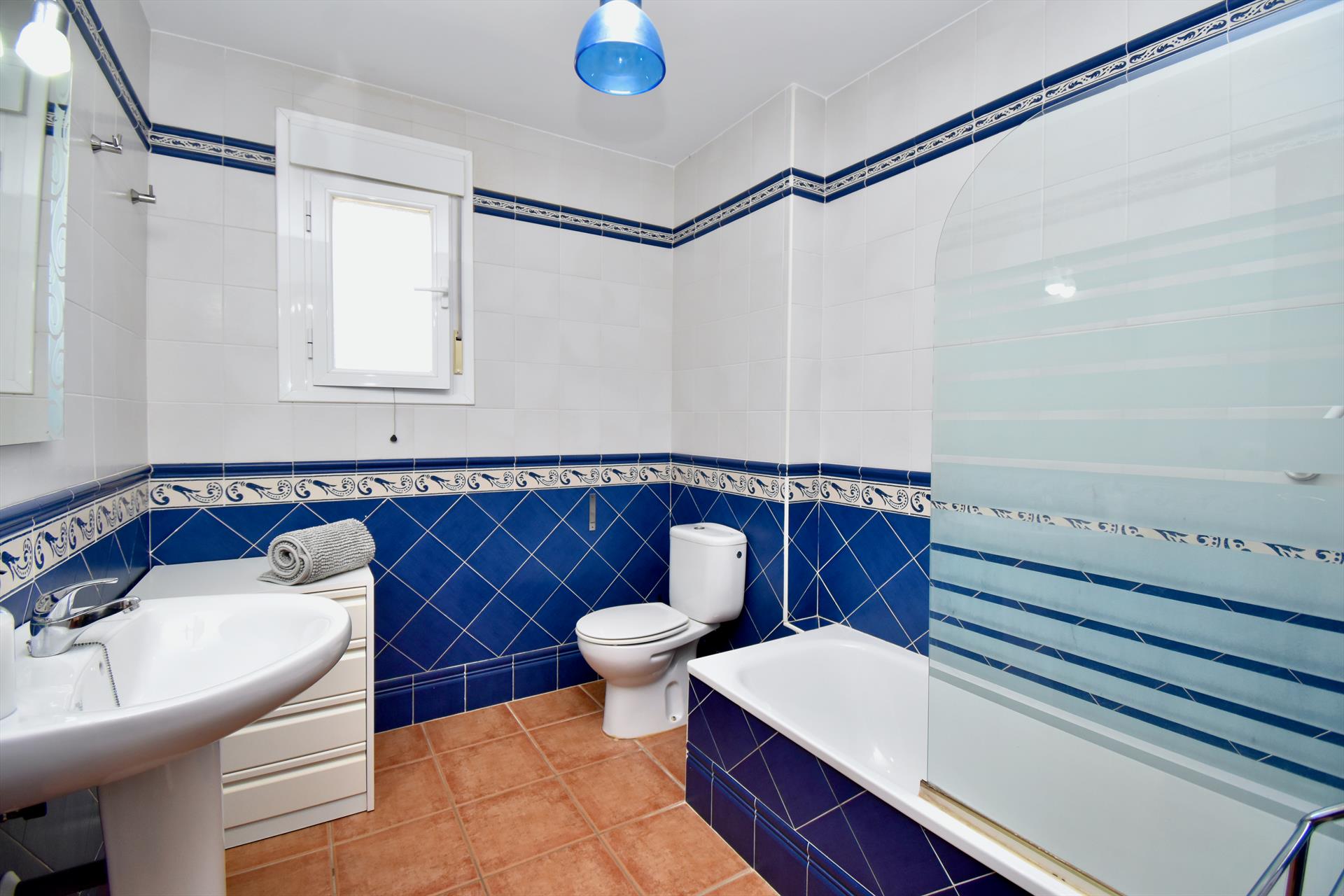 La villa cuenta con 4 dormitorios y 3 baños, distribuidos en 2 niveles. El alojamiento ofrece un jardín con césped y árboles. La proximidad a la playa, tiendas, actividades deportivas, instalaciones de entretenimiento, vida nocturna, lugares de interés y cultura, hacen de esta villa un lugar ideal para pasar sus vacaciones en España con familia o amigos.