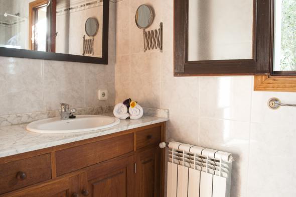 Villa en Es Carritxo, Mallorca, España con piscina privada para 8 personas. La villa está situada en una zona rural y montañosa. La villa tiene 4 dormitorios y 3 cuartos de baño, distribuidos en 3 plantas.