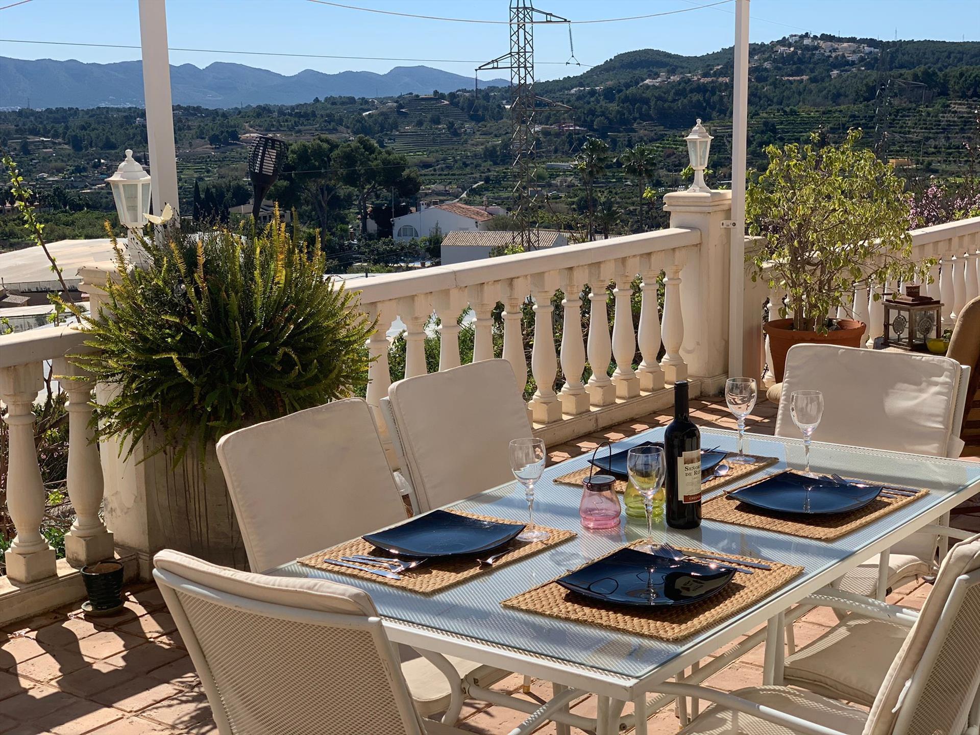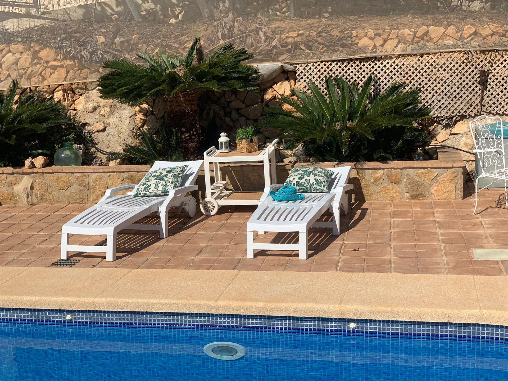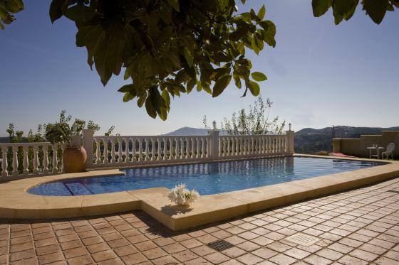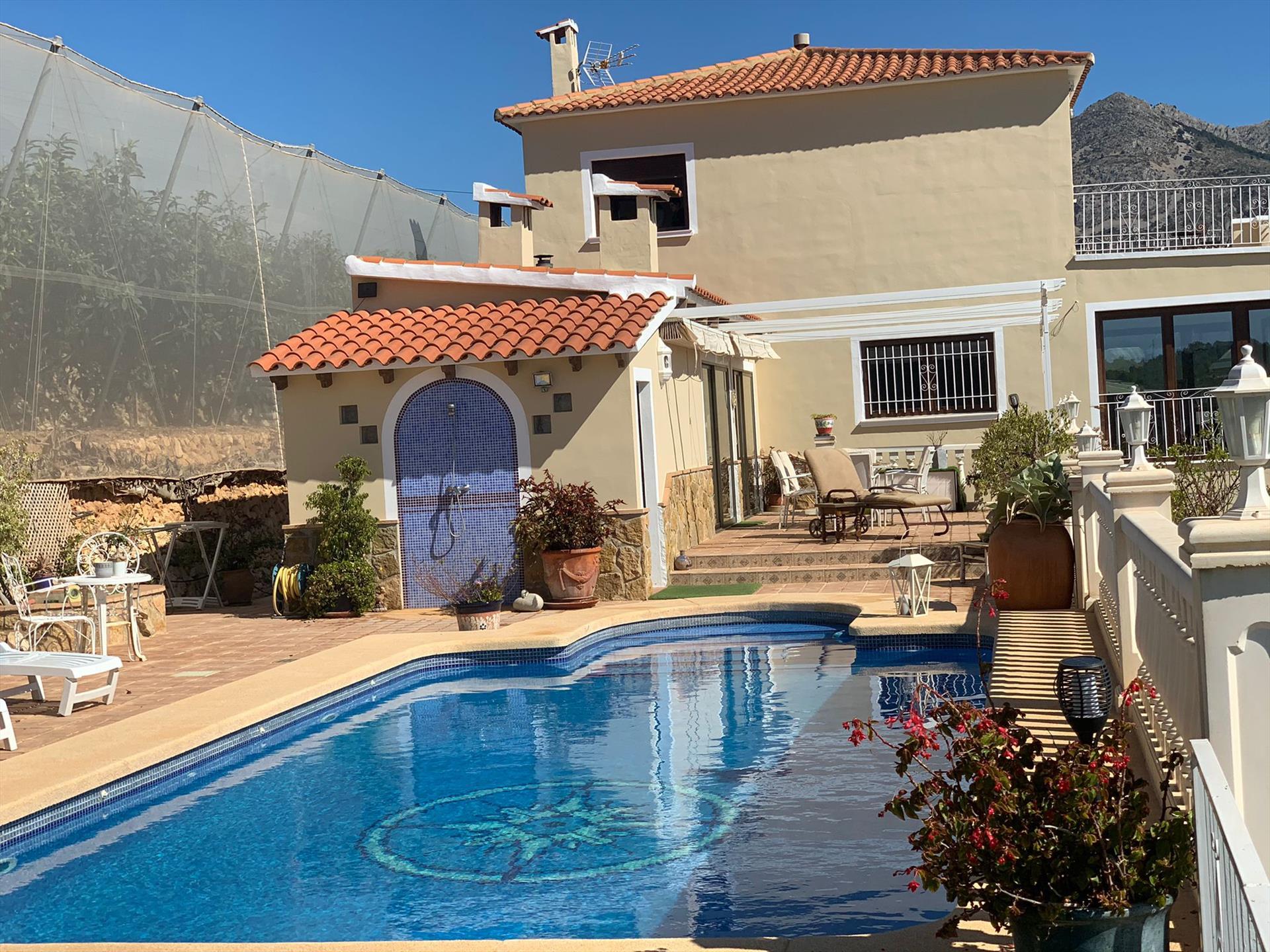 Villa en Callosa d'En Sarría, Costa Blanca, España, con piscina privada para 8 personas. La casa está situada en una zona rural y arbolada.