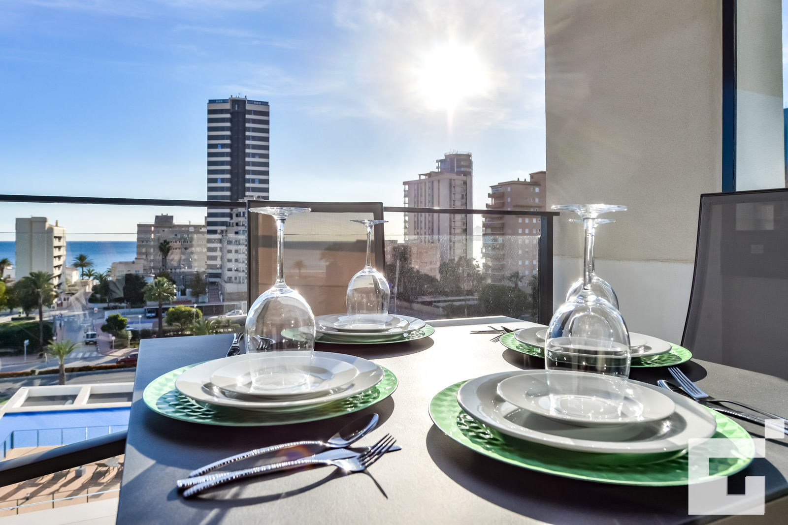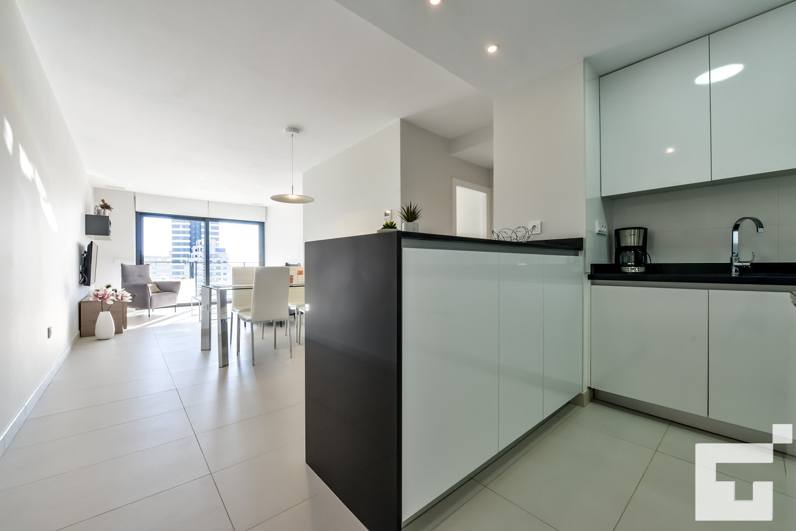 Hermoso y cómodo apartamento con piscina comunitaria en Calpe, Costa Blanca, España, para 4 personas. El apartamento está situado en una zona de playa urbana, cerca de restaurantes y bares, tiendas y supermercados, a 200 m de la playa Arenal-Bol.