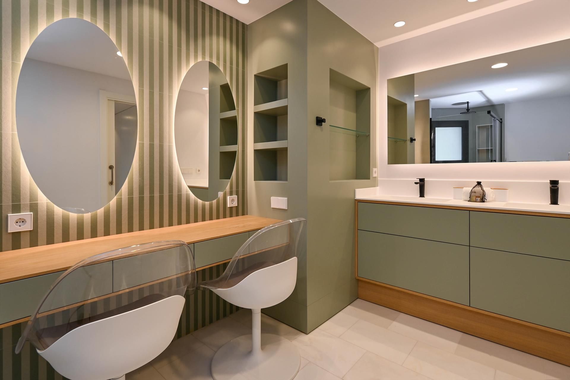 • Cocina abierta con placa eléctrica, horno eléctrico, microondas, lavavajillas, frigorífico-congelador, cafetera, hervidor eléctrico, batidora, tostadora y exprimidor