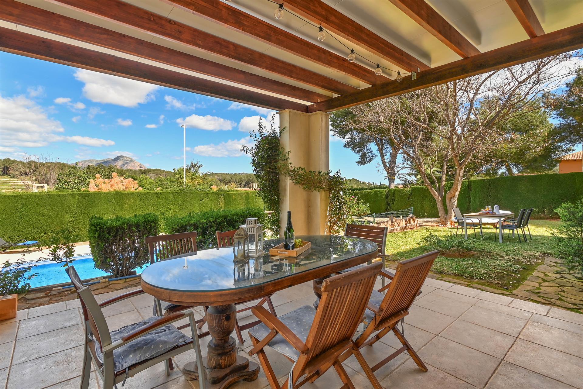La casa cuenta con 3 dormitorios y 2 baños. El alojamiento ofrece privacidad, un jardín con césped y vistas a las montañas. La proximidad a la playa, lugares para ir de compras, actividades deportivas, atracciones turísticas y culturales hace de esta villa un lugar ideal para disfrutar de sus vacaciones en España con la familia o amigos, e incluso con sus mascotas.