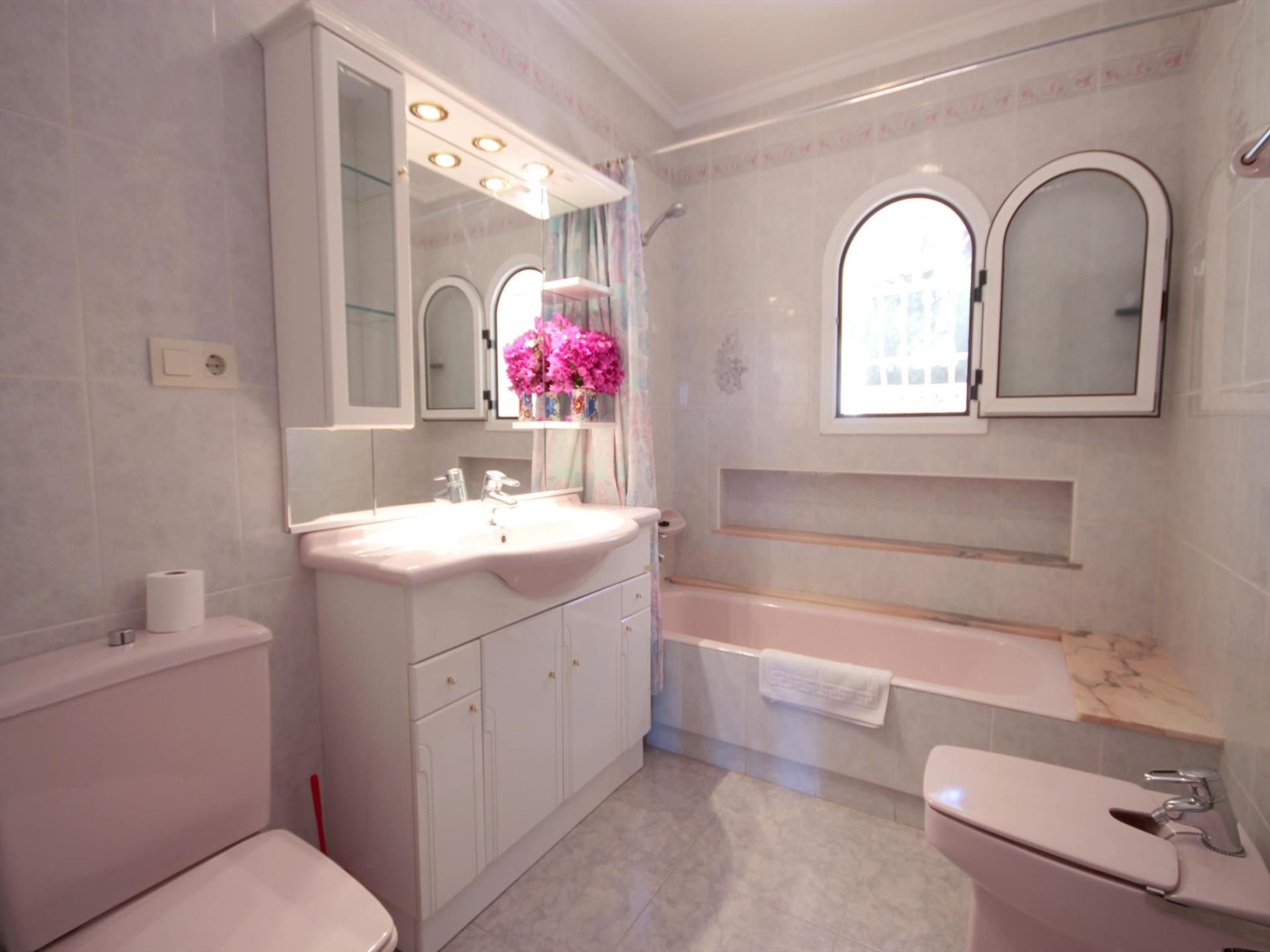 • baño con lavabo individual, combinación de bañera/ducha, bidé y aseo