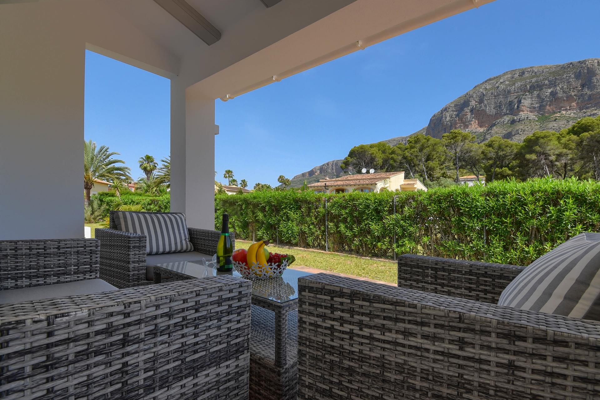 Incantevole e accogliente villa con piscina privata a Javea, Costa Blanca, Spagna per 6 persone. La casa è situata in una zona residenziale e montuosa vicino alla spiaggia.