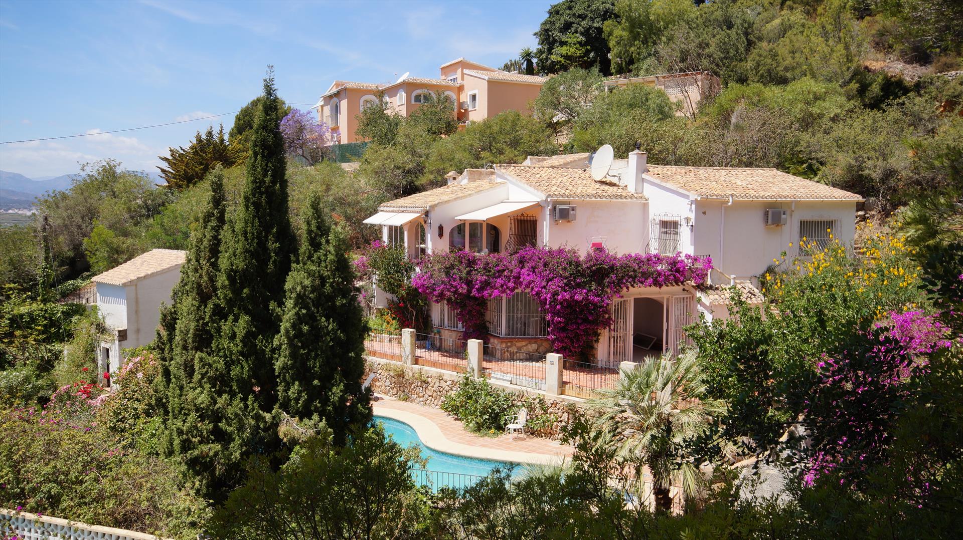 Bellissima e confortevole villa a Jávea, Costa Blanca, Spagna, con piscina privata per 8 persone. La casa è situata in una zona residenziale e boschiva vicino alla spiaggia.