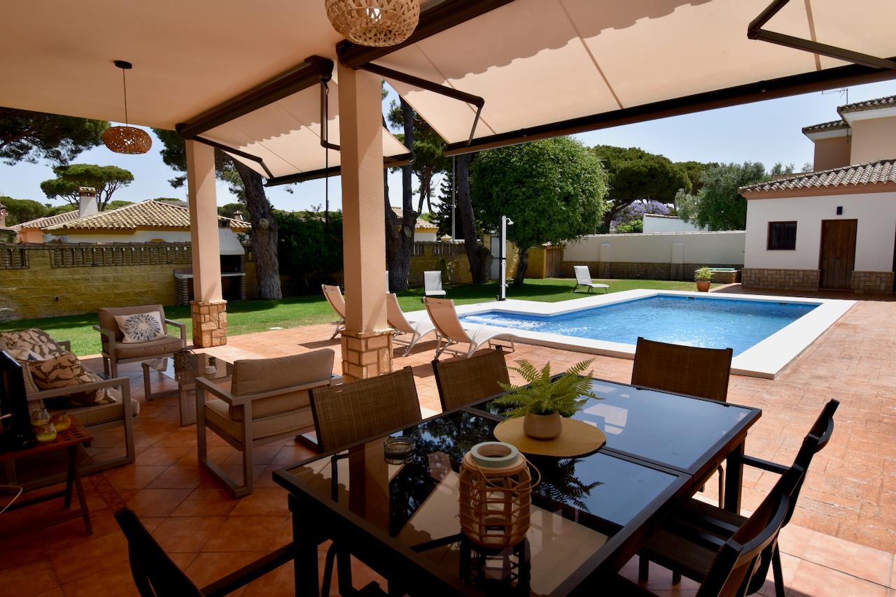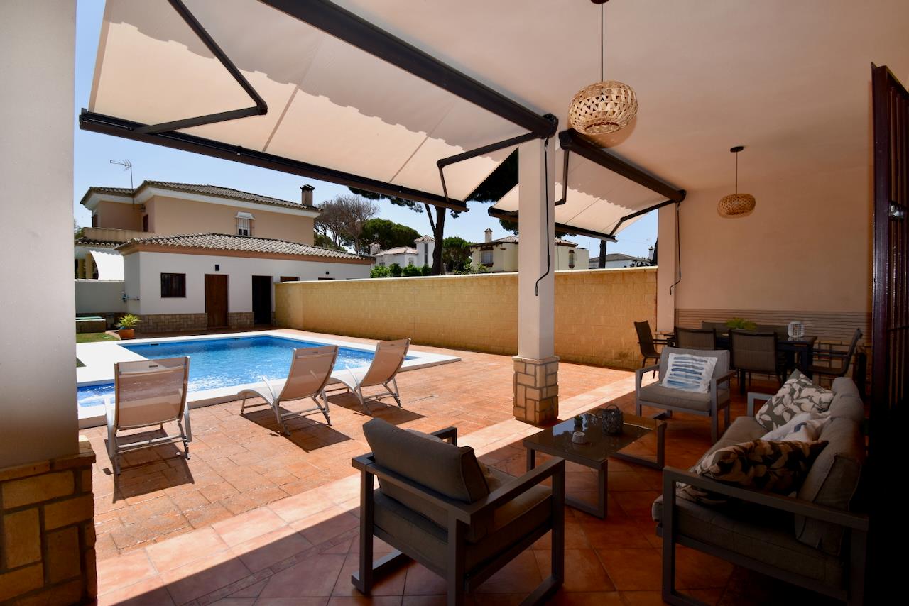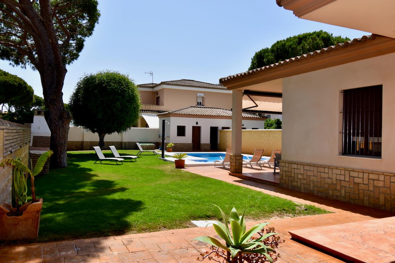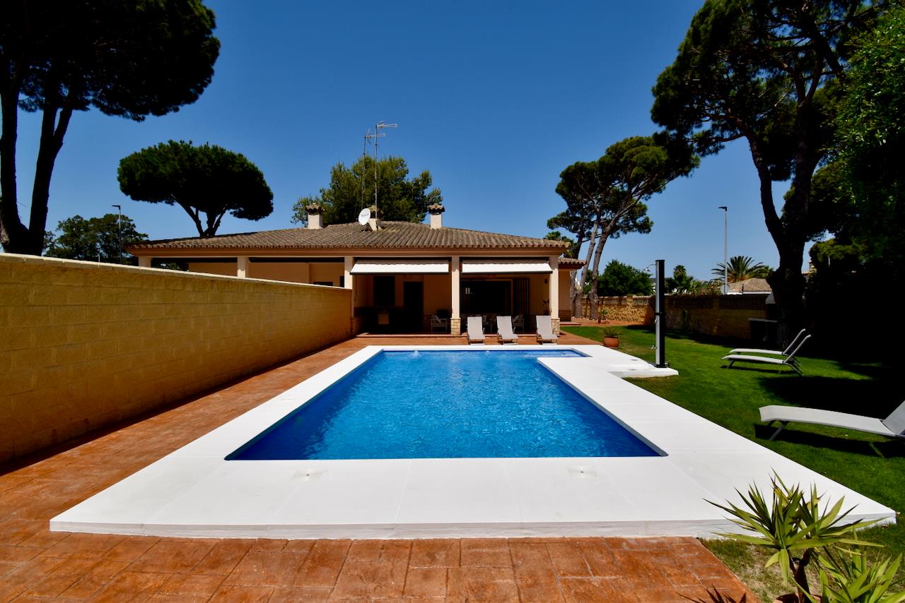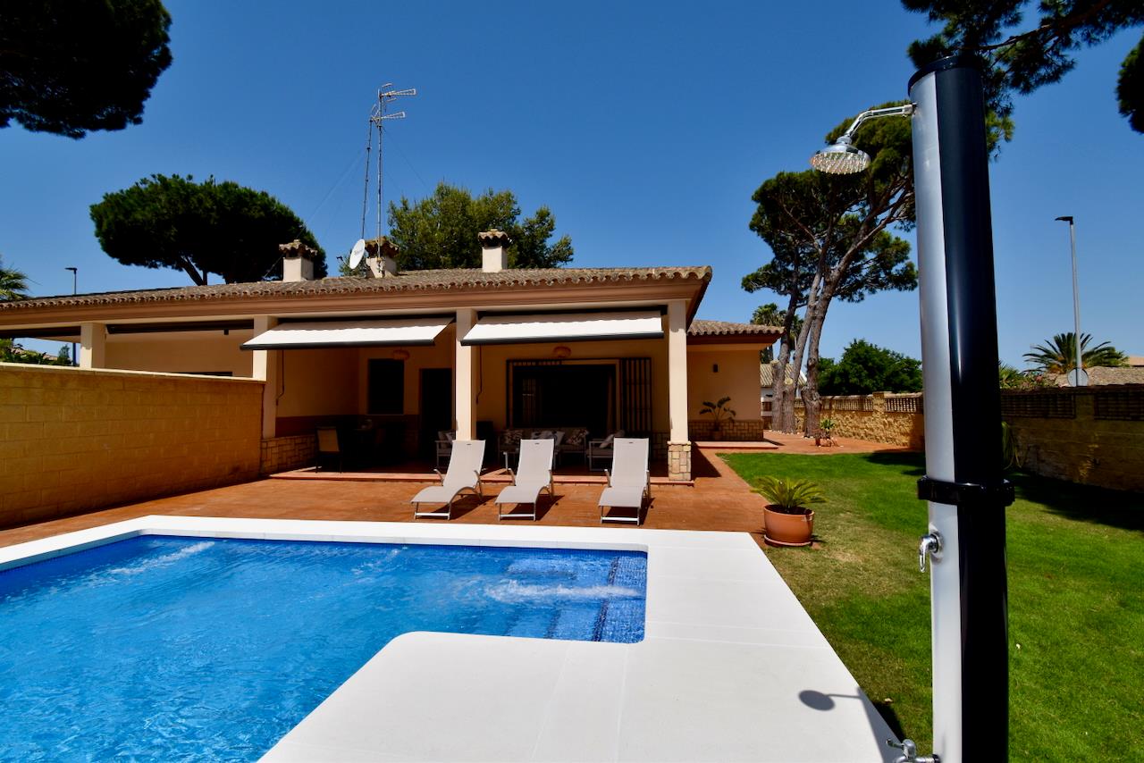 Villa con piscina privata a Chiclana de la Frontera, Costa de la Luz, Spagna per 6 persone. La casa è situata in una zona residenziale vicino alla spiaggia, a pochi passi da ristoranti e bar, a 3 km dalla spiaggia di La Barrosa.