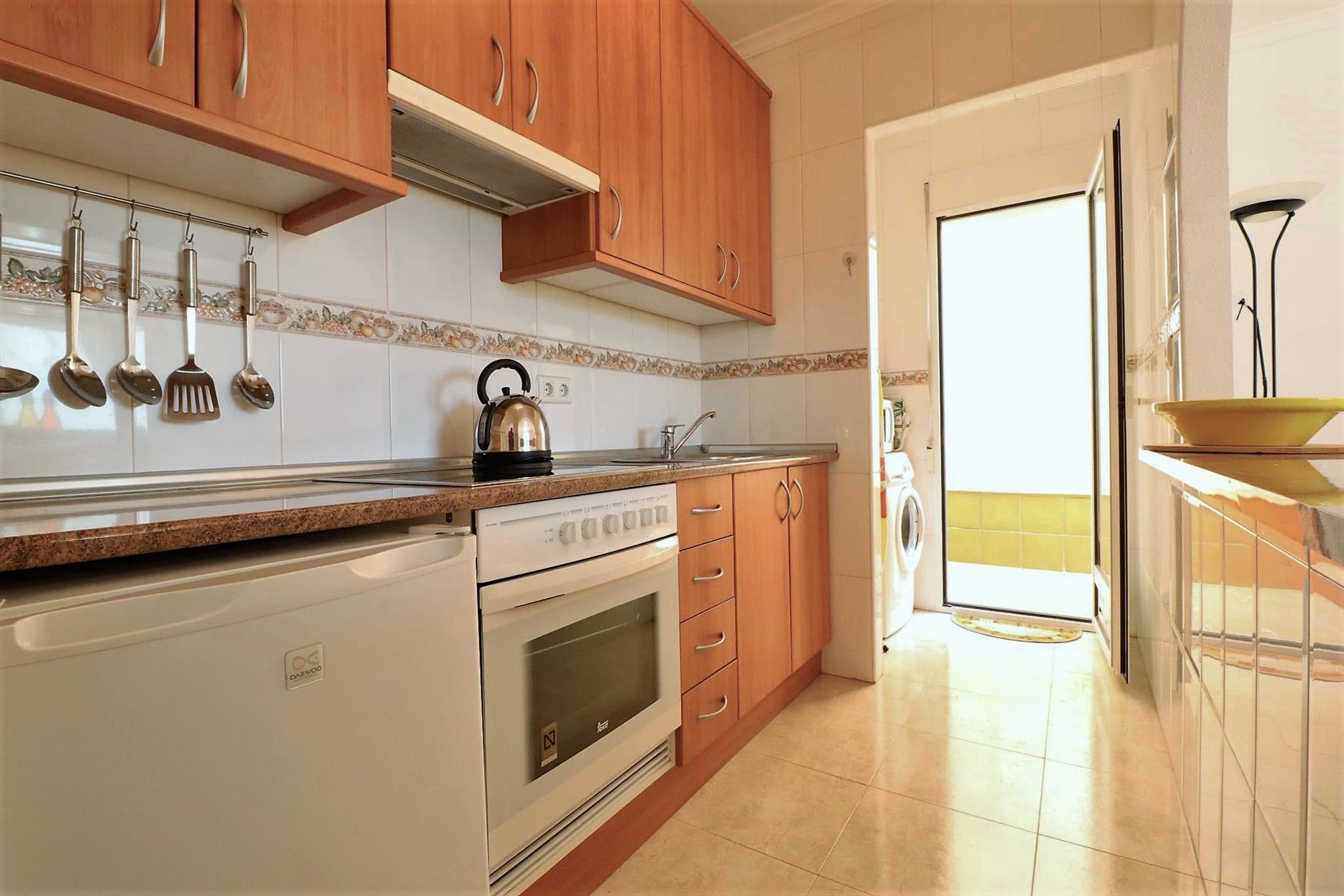 1. Innenausstattung: Voll möbliert, Kühlschrank, Elektroherd oder Grill, Kaffeemaschine, Anschluss, Wasserkocher, Bügeleisen, Bügelbrett, Waschmaschine und Mixer.