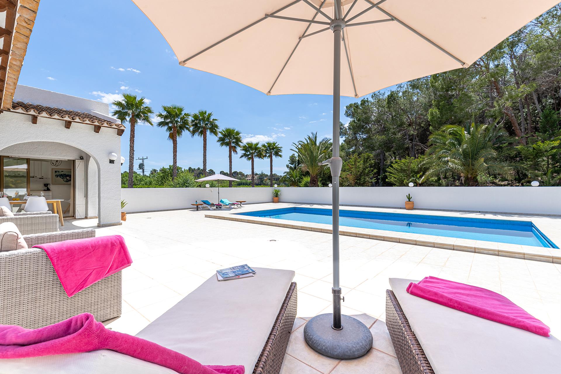Die Unterkunft verfügt über 2 Schlafzimmer und 2 Badezimmer. Die Villa bietet Privatsphäre, einen Garten mit Kies und Bäumen sowie einen großen, wunderbaren beheizten Pool. Ihr Komfort und die Nähe zum Strand, Geschäften, Sportaktivitäten, Nachtleben, Sehenswürdigkeiten und Kultur machen dies zu einer ausgezeichneten Villa, um Ihren Urlaub in Spanien mit Familie, Freunden und sogar Ihren Haustieren zu verbringen.