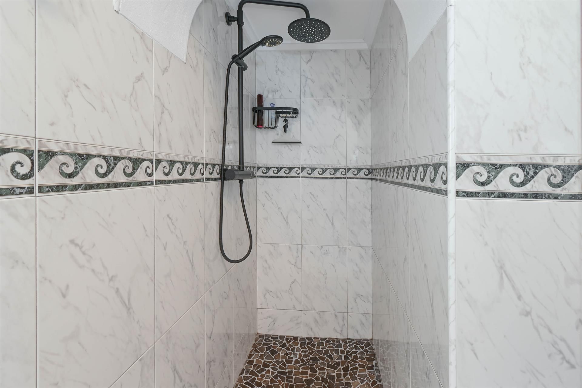 • 3 Badezimmer jeweils mit Einzelwaschbecken, Dusche und Toilette