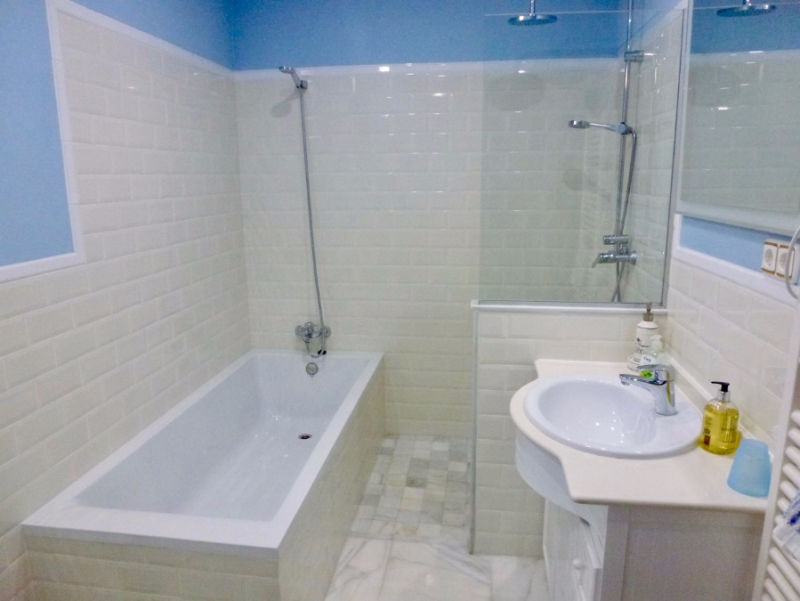 • Badezimmer mit Waschbecken, Bad/Dusche-Kombination, Dusche und WC