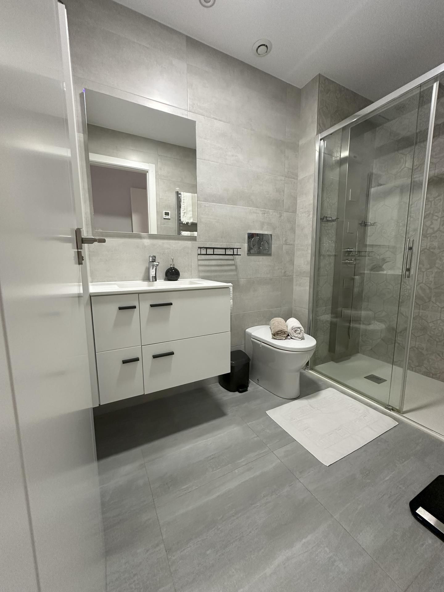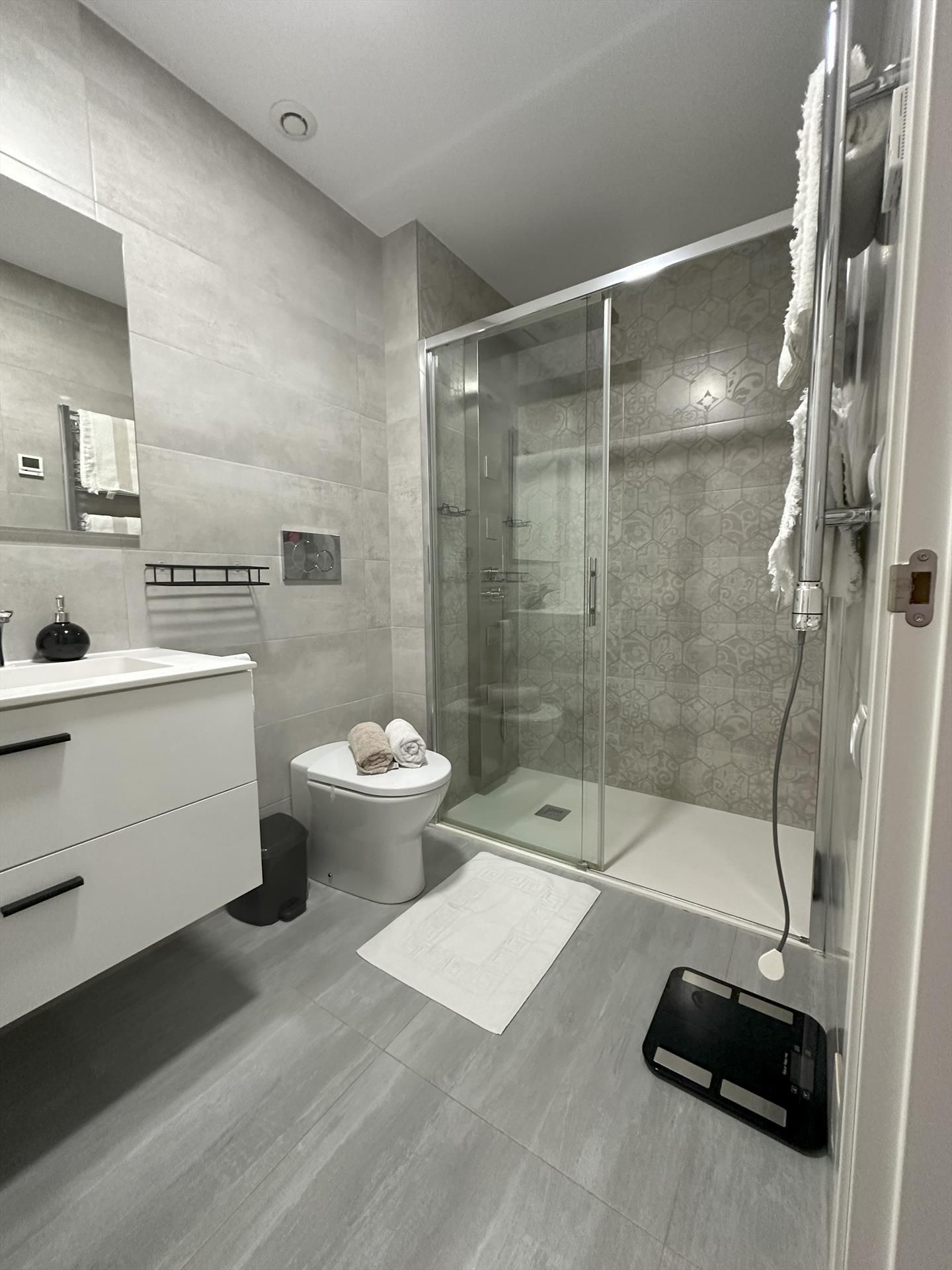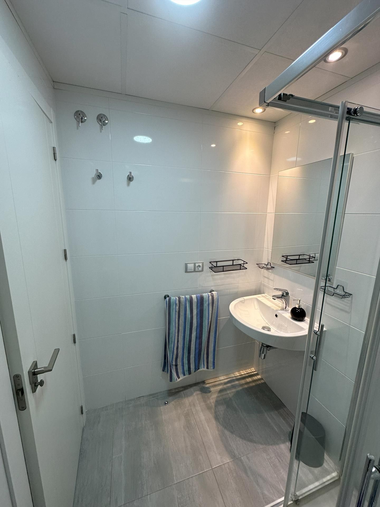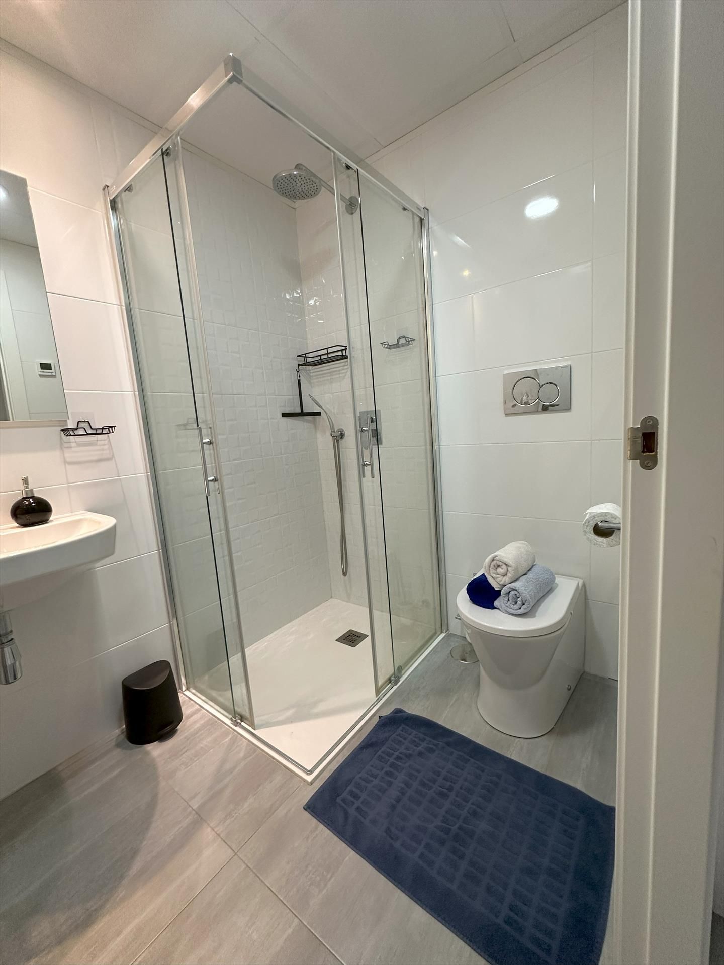 • Bathroom with single washbasin, shower and toilet