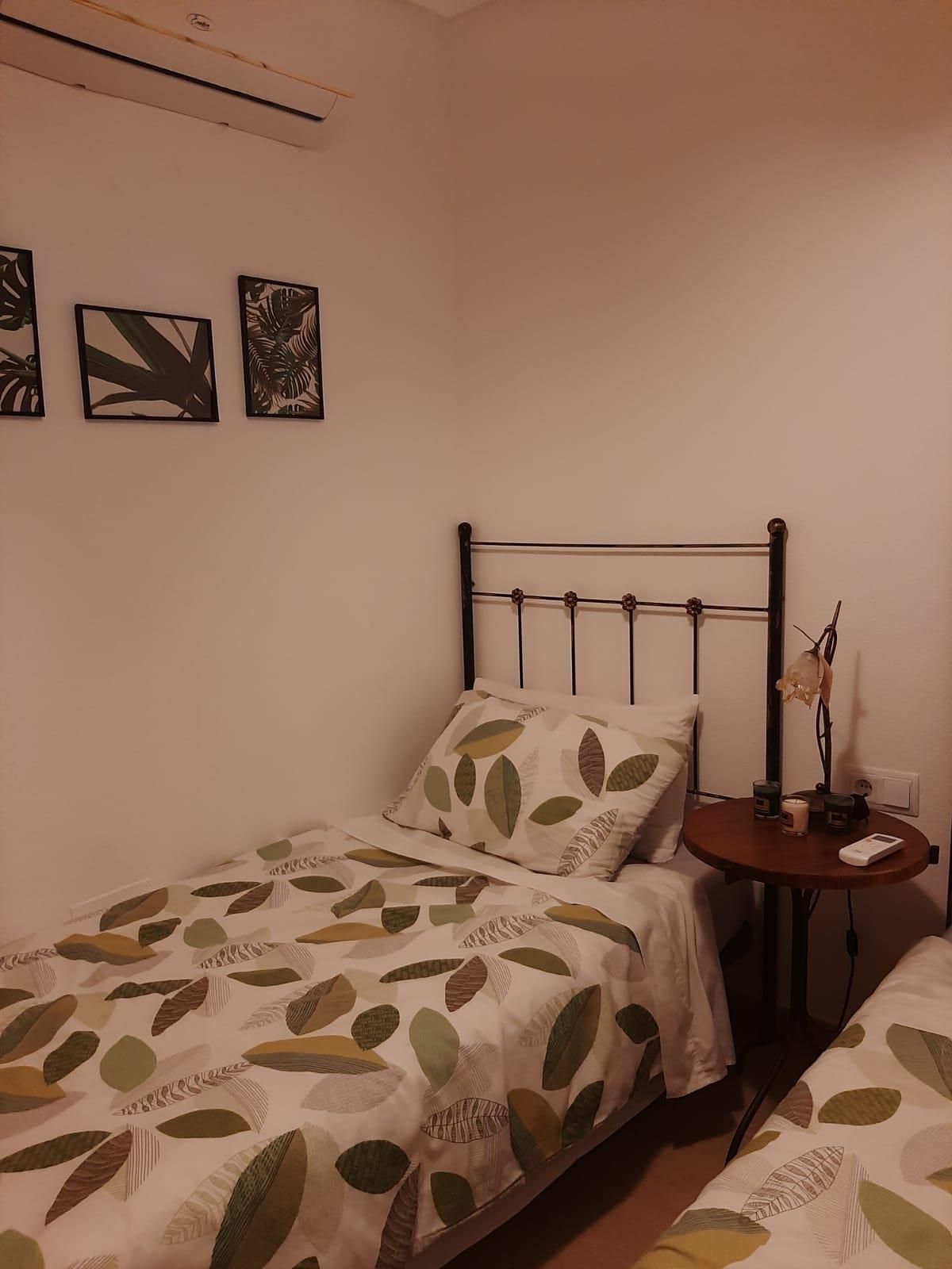 • bedroom with air conditioning and 2 single beds (measuring 200 by 80cm)