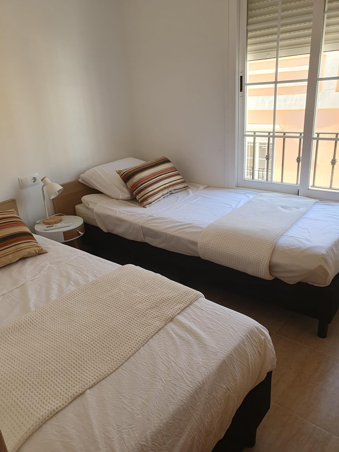• bedroom with air conditioning and 2 single beds (measuring 200 by 80 cm)