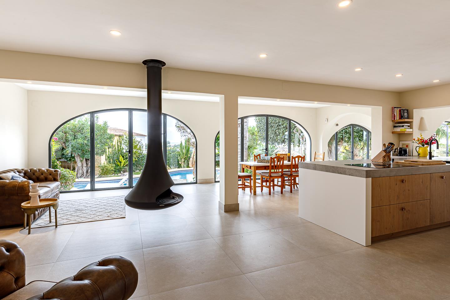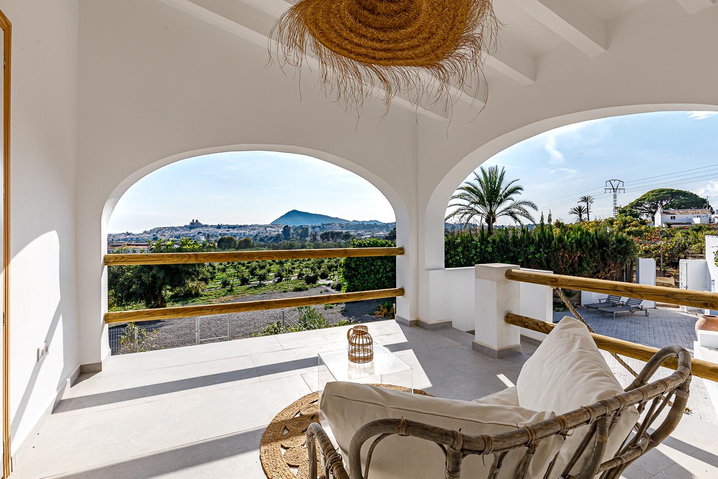 The villa has 5 bedrooms, 4 bathrooms, and 1 guest toilet, spread over the main accommodation and a garden house. The accommodation offers a lot of privacy, a wonderful lawned garden with gravel and trees, a lovely heated pool, and beautiful views of the valley and the mountains. Its comfort and the proximity to the beach, shops, sports activities, and places to go out make this an ideal villa to spend your holidays in Spain with family or friends.