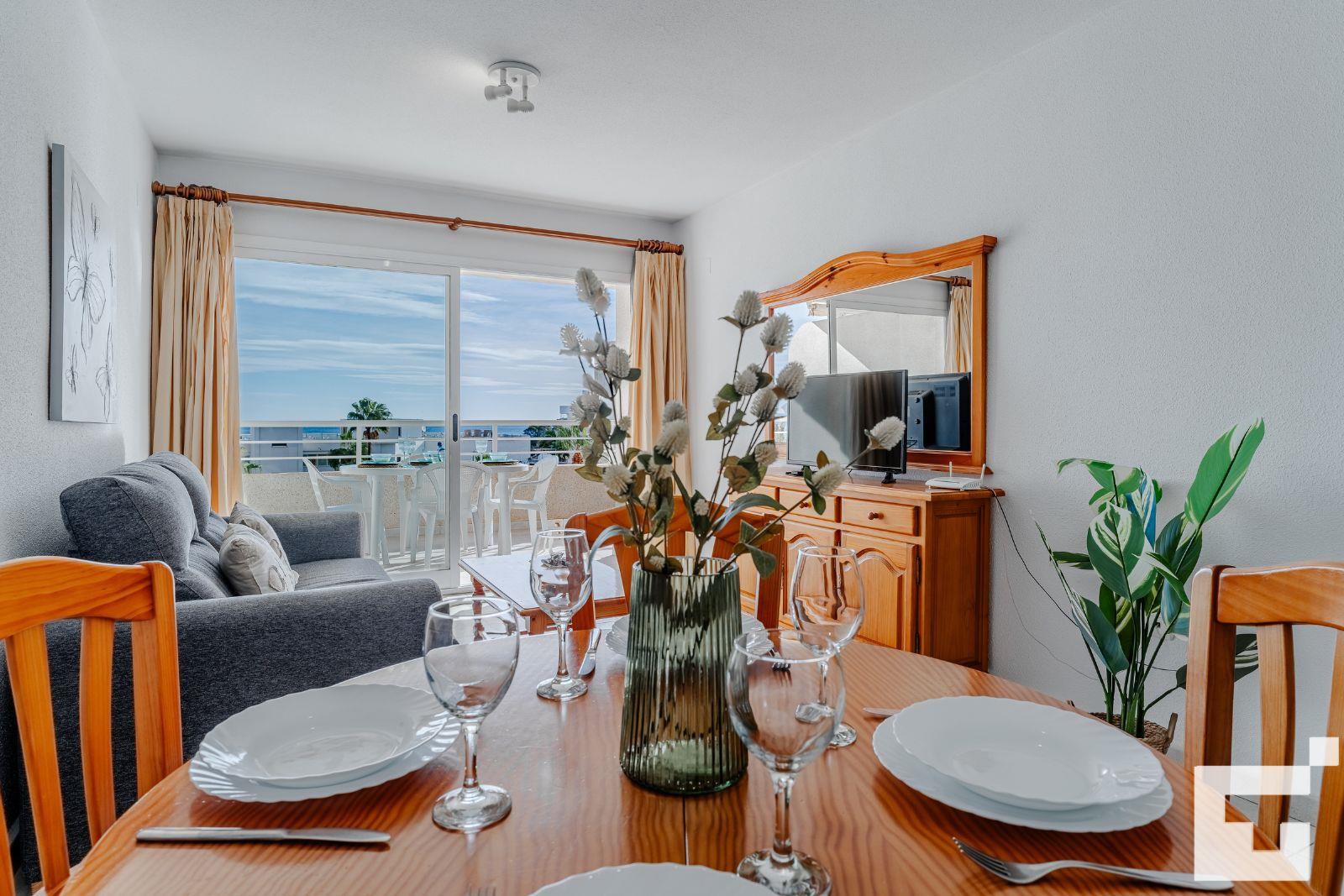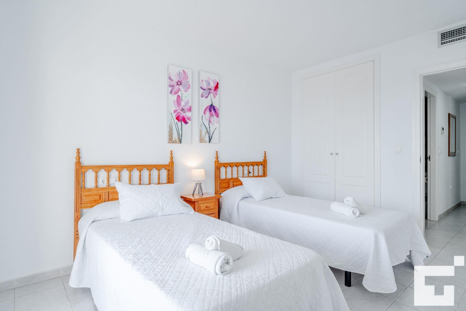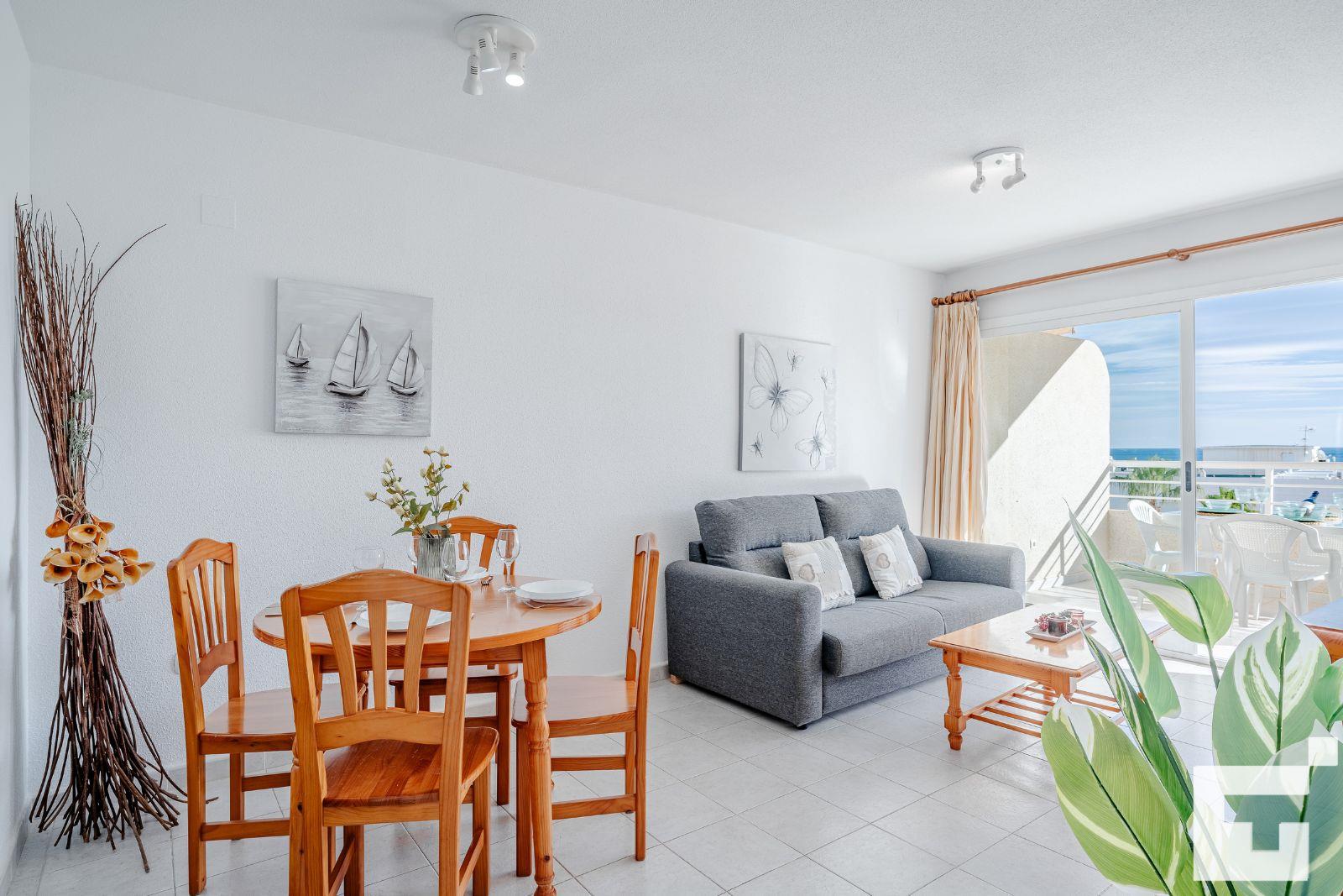 The apartment has 1 bedroom and 1 bathroom. The accommodation offers privacy, a lawned communal garden with trees and wonderful views of the beach and the sea. Its comfort and the proximity of the beach, shopping areas, and entertainment options make this a fine apartment to spend your holidays in Spain with family or friends.