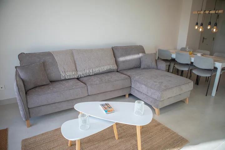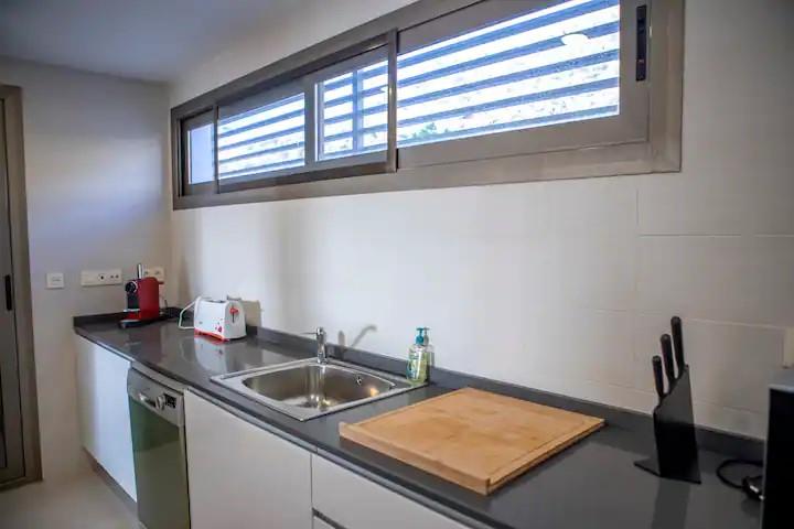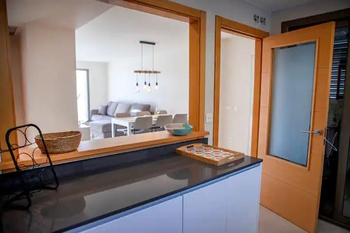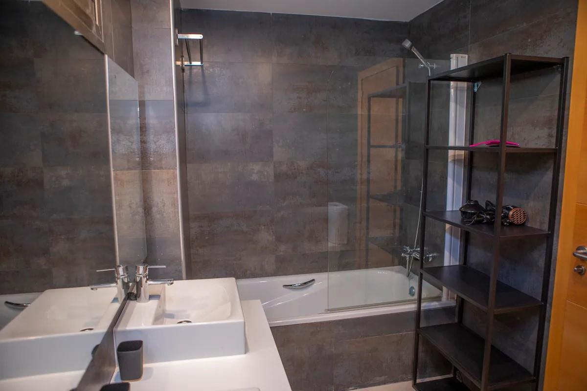 - Intérieur : Entièrement meublé, réfrigérateur, four ou grill électrique, cafetière, connecteur, bouilloire, fer à repasser, planche à repasser, lave-linge et mixeur.