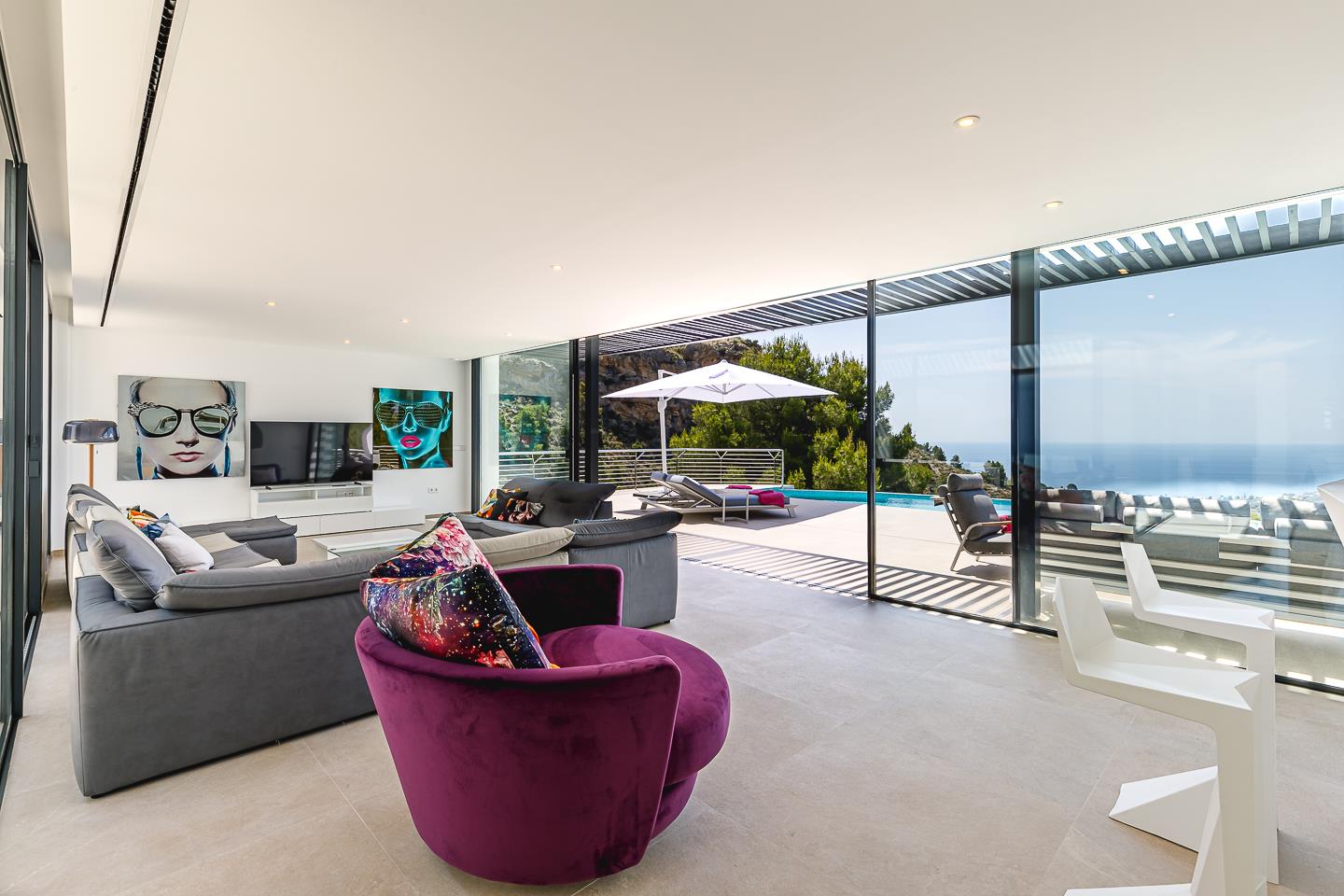 Magnifique et luxueuse villa avec piscine privée à Altea, Costa Blanca, Espagne, pouvant accueillir 10 personnes. La villa est située dans un quartier résidentiel côtier, vallonné et boisé, à 3 km de la plage de la Olla.