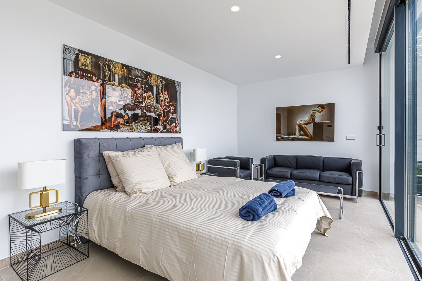 • 5 chambres climatisées, chacune avec un lit queen-size (mesurant 200 par 160 cm) et salle de bains attenante
