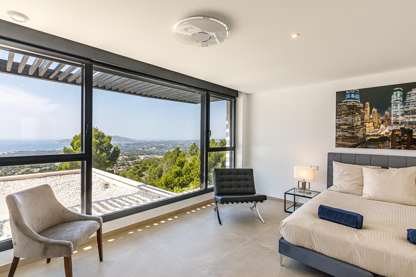 Cette villa luxueuse dispose de 5 chambres, 5 salles de bains et 1 toilettes invités, réparties sur 2 niveaux. L'hébergement offre intimité, une merveilleuse piscine, des vues imprenables sur la baie, la mer et la vallée, ainsi que de magnifiques vues sur les montagnes. Son confort et la proximité de la plage, des zones commerçantes, des activités sportives et des lieux de divertissement en font une villa luxueuse idéale pour passer vos vacances en Espagne en famille ou entre amis.