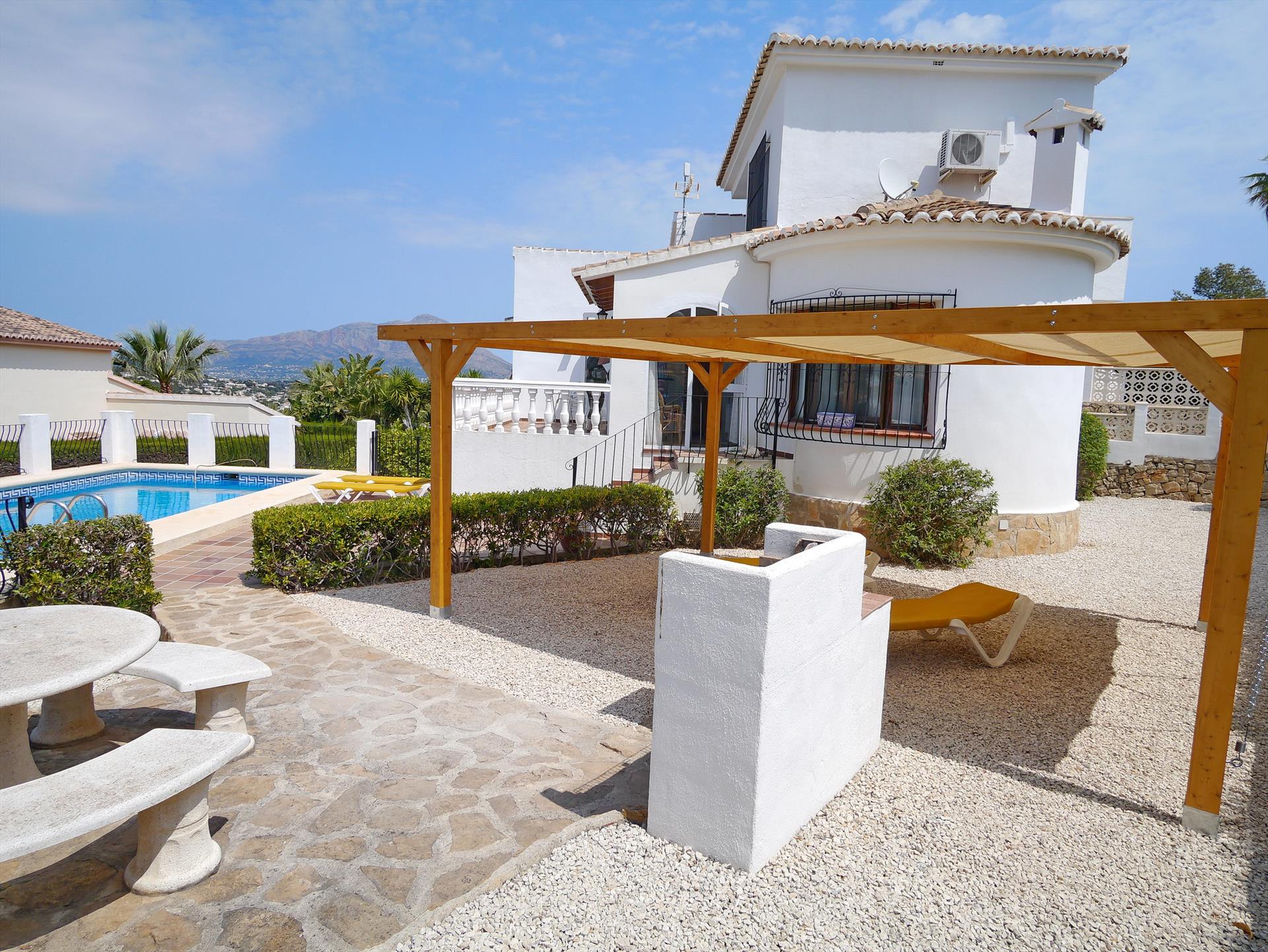 La maison dispose de 2 chambres et 2 salles de bains. L'hébergement offre un jardin avec gravier et arbres, une belle piscine, ainsi qu'une vue sur la vallée et les montagnes. Son confort et la proximité des commerces, des activités sportives et des lieux de sortie en font une villa idéale pour passer vos vacances en Espagne en famille ou entre amis.