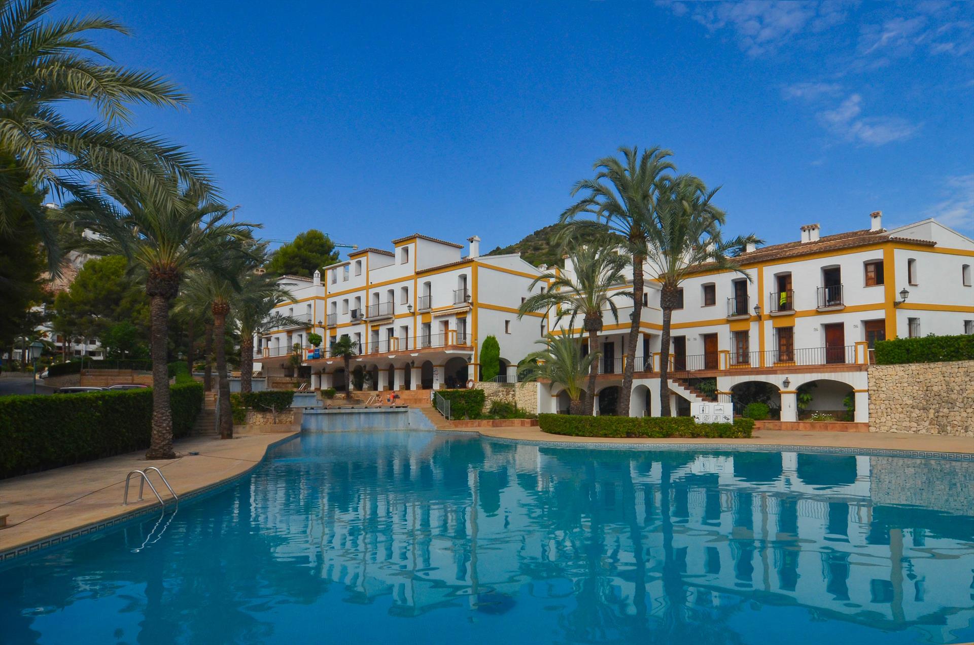 Belle et confortable maison à Denia, Costa Blanca, Espagne avec piscine commune pour 4 personnes. La maison est située dans un quartier résidentiel de plage.