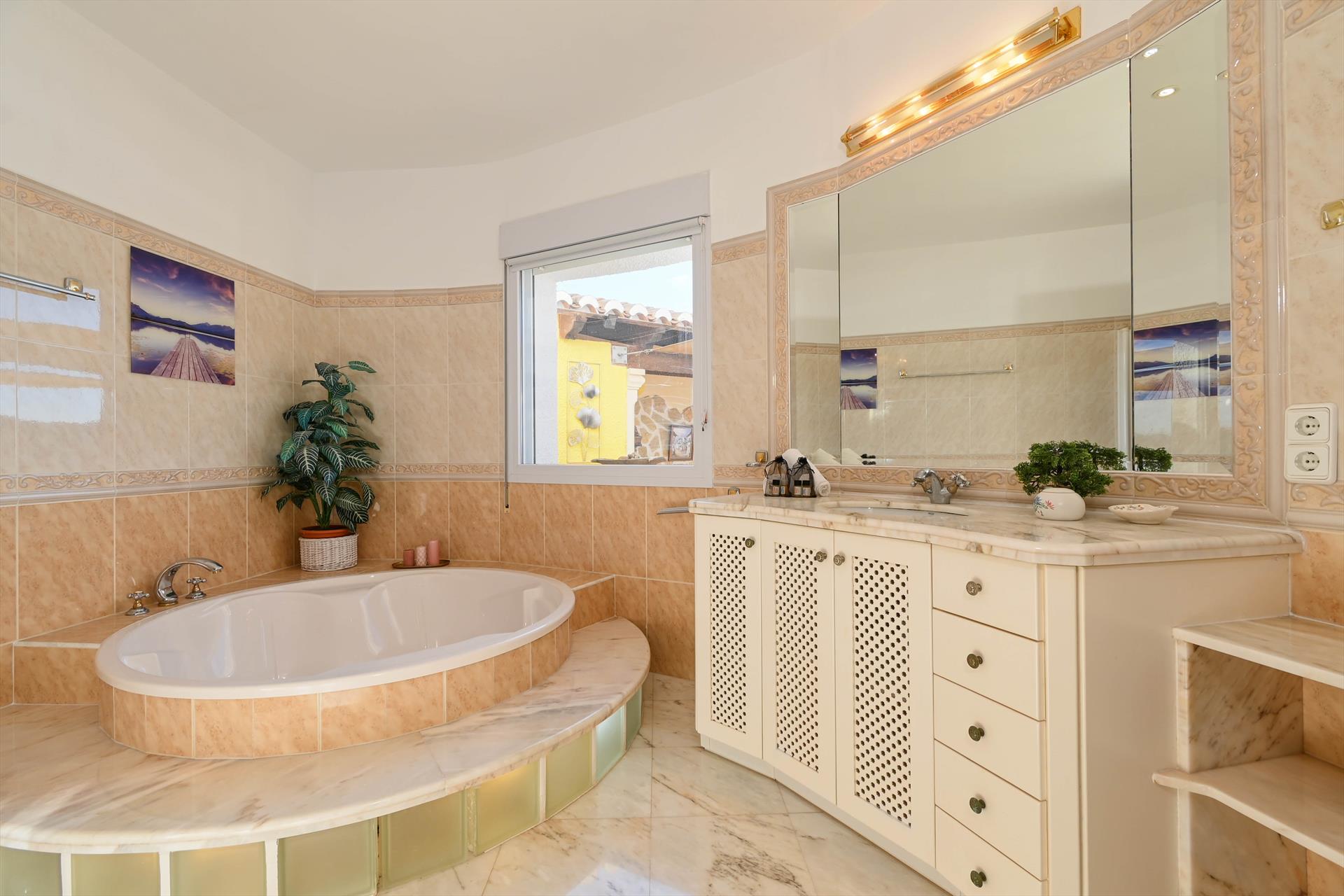 La villa dispose de 6 chambres, 4 salles de bains et 2 toilettes invités, réparties sur 3 niveaux. L'hébergement offre beaucoup d'intimité, un jardin avec des arbres, une superbe piscine et des vues splendides sur la mer. Son confort et la proximité de la plage, des commerces, des activités sportives, des lieux de sortie, des attractions et de la culture font de cette villa un lieu idéal pour passer vos vacances en Espagne en famille ou entre amis.