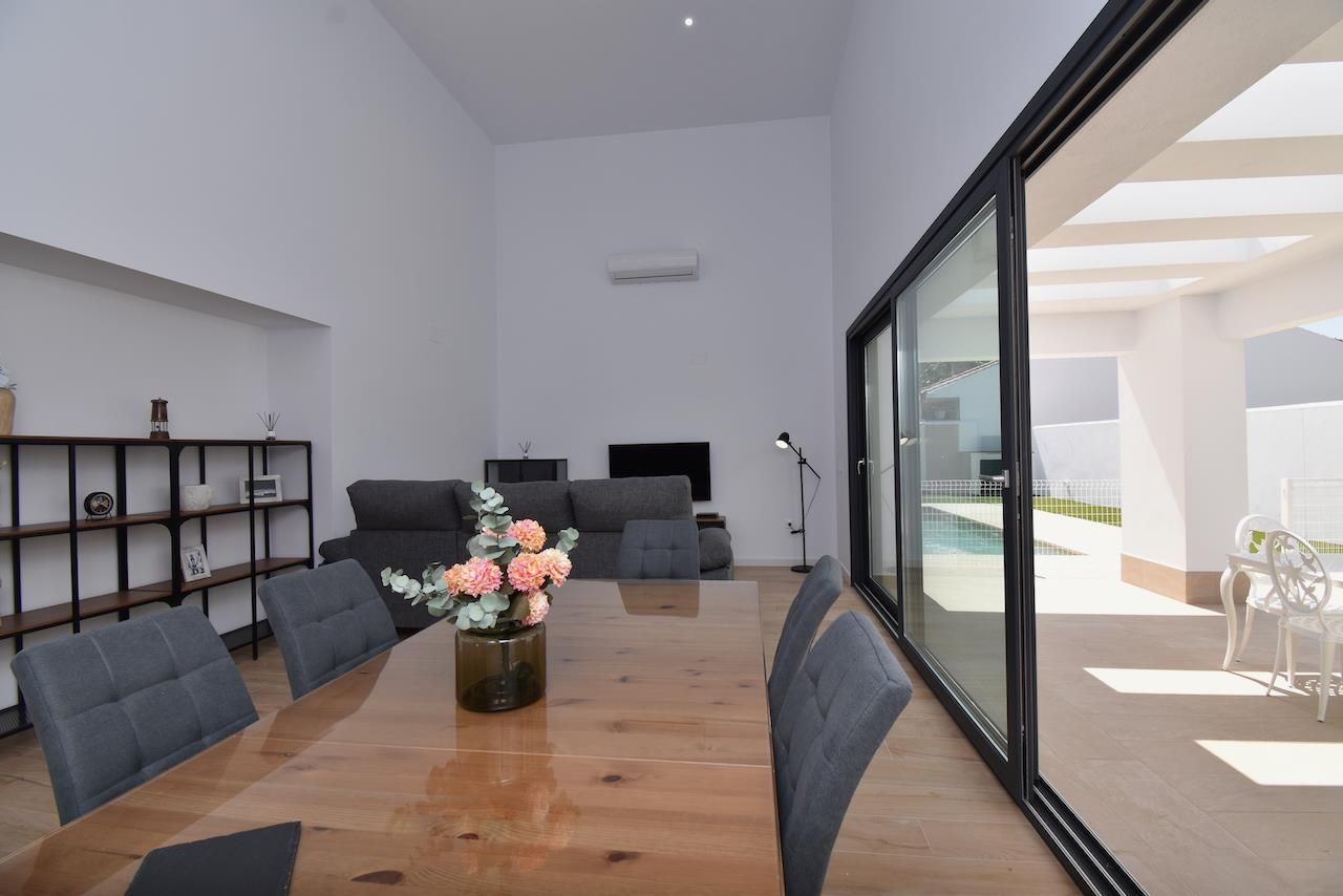 Villa moderne et luxueuse à Chiclana de la Frontera, Costa de la Luz, Espagne, avec piscine privée pour 8 personnes. La maison est située dans un quartier résidentiel proche de la plage et se trouve à 1 km de la plage de La Barrosa.