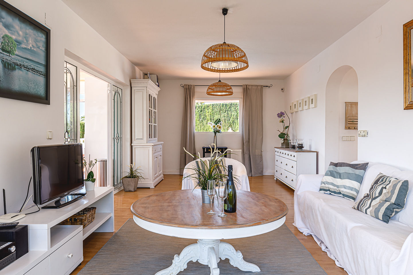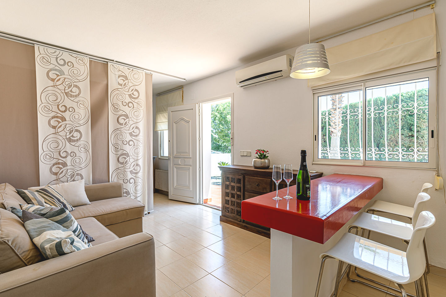 • woon/eetkamer met airconditioning, televisie, DVD-speler en hifi