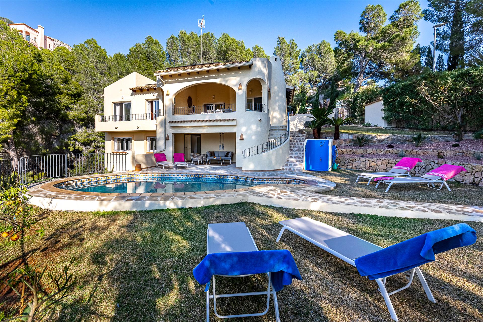 De villa heeft 3 slaapkamers en 3 badkamers, verspreid over 2 niveaus. De accommodatie biedt veel privacy, een prachtige tuin met gras en grind, een mooi zwembad, adembenemende uitzichten op de bergen en een prachtig uitzicht op de vallei. Het comfort en de nabijheid van het strand, winkelgelegenheden, sportactiviteiten en het nachtleven maken dit een ideale villa om uw vakantie in Spanje door te brengen met familie of vrienden.