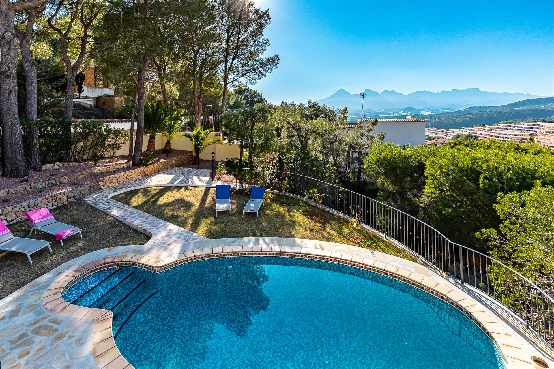 Geweldige en comfortabele villa in Altea, Costa Blanca, Spanje met privézwembad voor 6 personen. Het huis is gelegen in een kustachtige, heuvelachtige en residentiële omgeving en ligt op 2 km van het La Olla-strand.