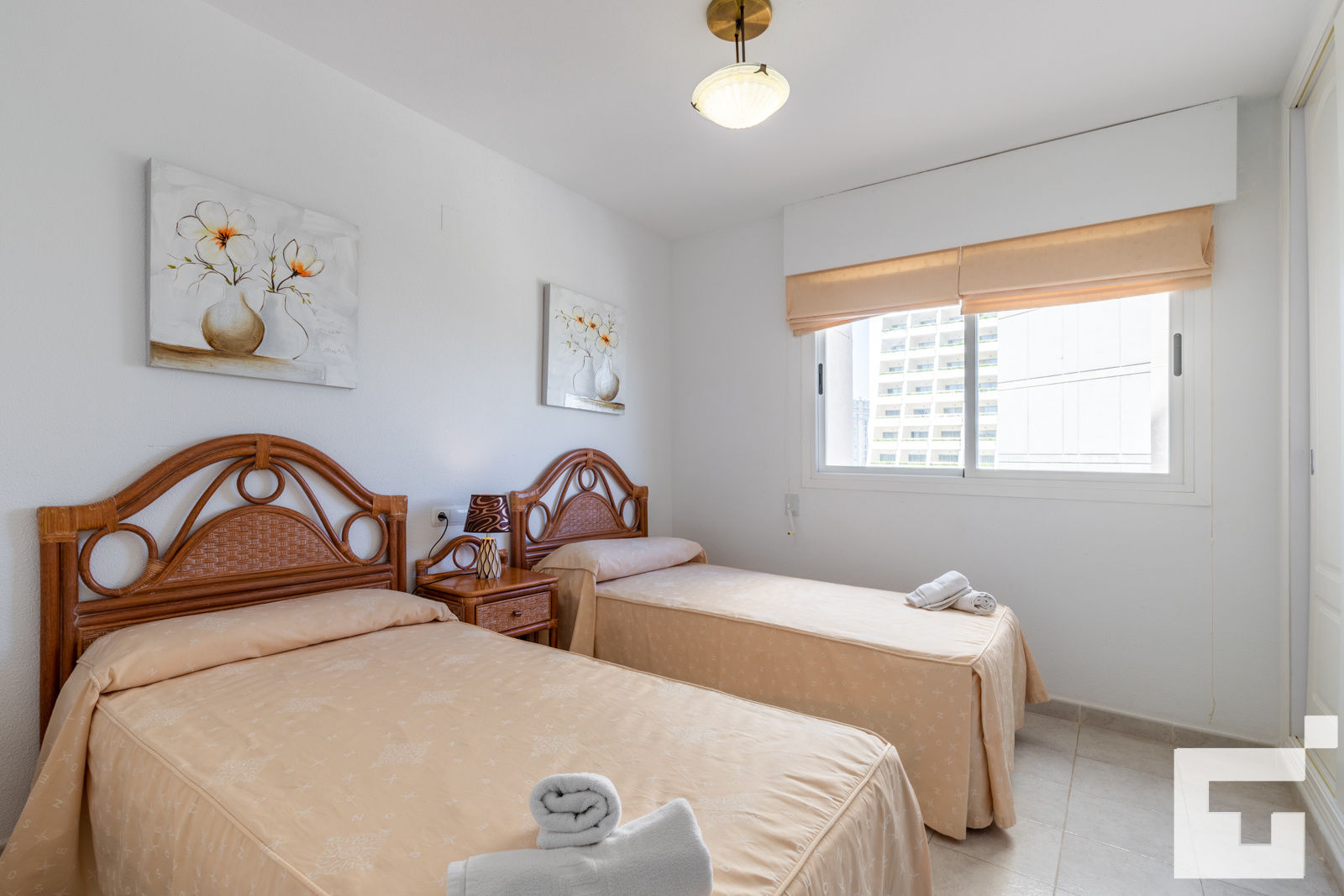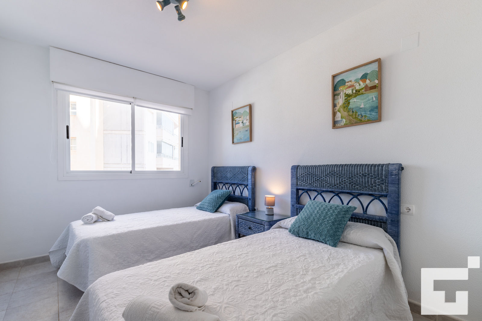 • 2 slaapkamers met airconditioning, elk met 2 eenpersoonsbedden