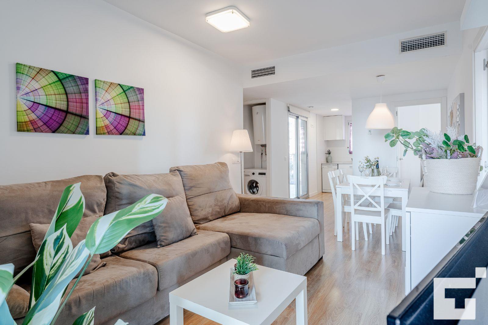 Het appartement beschikt over 2 slaapkamers en 2 badkamers. De accommodatie biedt een prachtige, met gras begroende tuin en een gemeenschappelijke tuin. Het comfort en de nabijheid van het strand, winkels, sportactiviteiten en entertainment maken dit een ideaal appartement om uw vakantie in Spanje door te brengen met familie of vrienden.