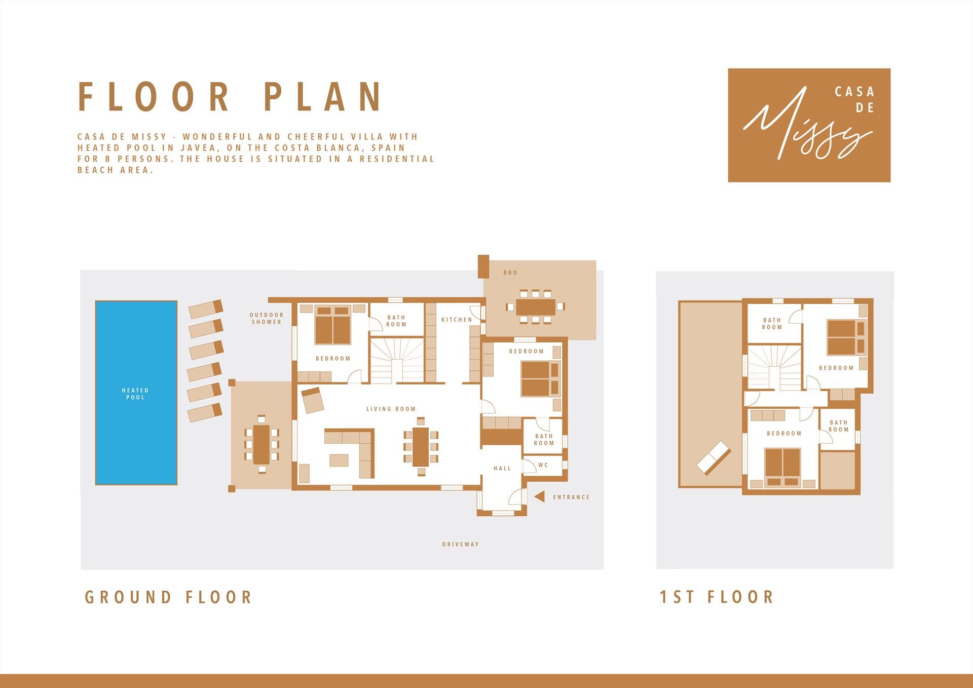 Prachtige en vrolijke villa in Xàbia, Costa Blanca, Spanje met verwarmd zwembad voor 8 personen. Het huis is gelegen in een residentiële strandbuurt.