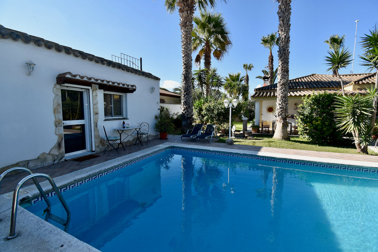 Geweldige en comfortabele villa in Chiclana de la Frontera, Costa de la Luz, Spanje met privézwembad voor 6 personen. Het huis is gelegen in een residentieel strandgebied, dicht bij winkels, 3 km van het strand La Barrosa en 3 km van La Barrosa.