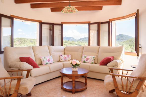 Villa in Es Carritxo, op Mallorca, Spanje met privé zwembad voor 8 personen. De villa ligt in een landelijke en bergachtige omgeving. De villa heeft 4 slaapkamers en 3 badkamers, verdeeld over 3 woonlagen.
